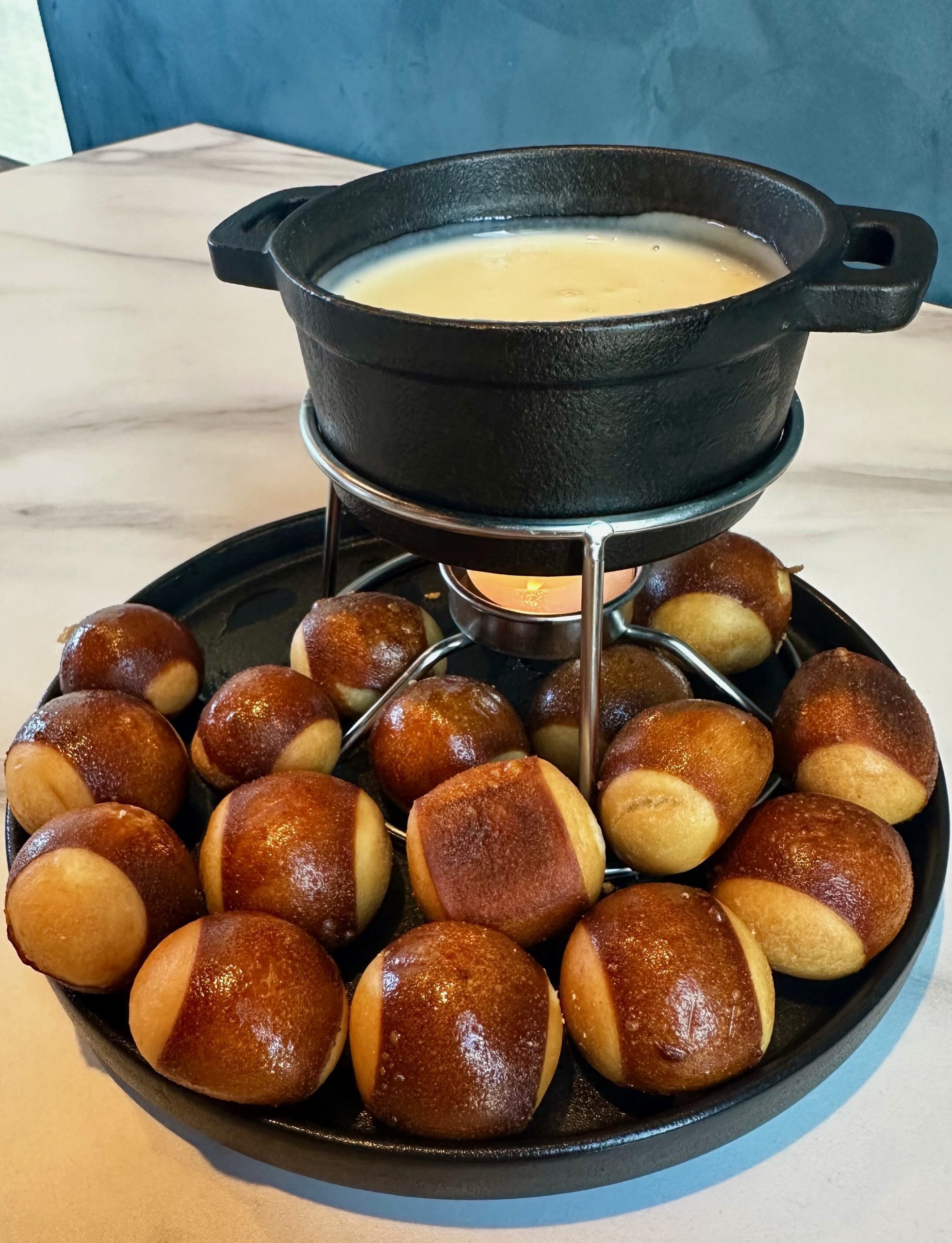 Deciding what to order is always a challenge from a menu with so many options. Because I like virtually everything, I leave it to my Kim to order whatever appetizer we’ll be sharing. For our inaugural visit to Social, she wanted the pretzel fondue with a housemade queso. Our server (the wonderful Beth) shared that the pretzel comes from Pretzel Zilla, America’s number one source for soft pretzel breads and buns. Far from a conventional knot-shaped pretzel, its shape is more akin to a baked bread orb which in appearance resembles an overgrown hazelnut. Unlike many pretzels, each orb is low in salt which makes it more essential that the queso be good. It is. Only at Scottsdale’s Culinary Dropout have we experienced pretzels like these.