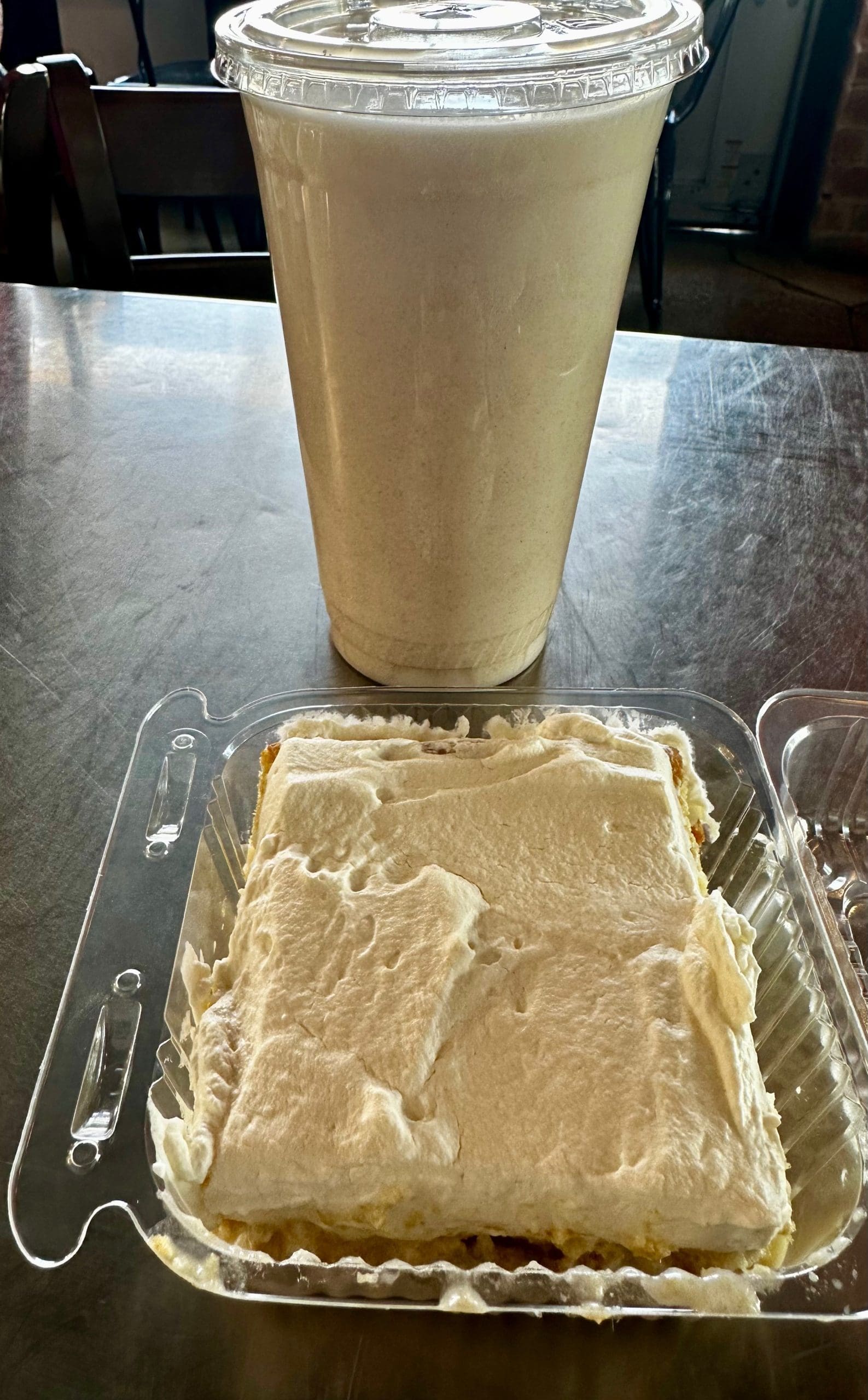8 June 2024: Three desserts adorn the menu. For my Kim, there’s no need to look further than pastel tres leches, the fabulous cake made with evaporated milk, heavy whipping cream, and sweetened condensed milk. Ideally, those milks should leak out with every press of your fork, rendering the cake extremely moist and tender. Though Rio Tacos serves its desserts on plastic “bowls,” the tres leches cake is as good as you’ll find anywhere. You can have the usual fountain drinks and even Jaritos beverages with your meal, but a better option is one of the two aguas frescas. Horchata, the rich and creamy rice-based beverage that’s especially refreshing when summer’s wrath is raging.