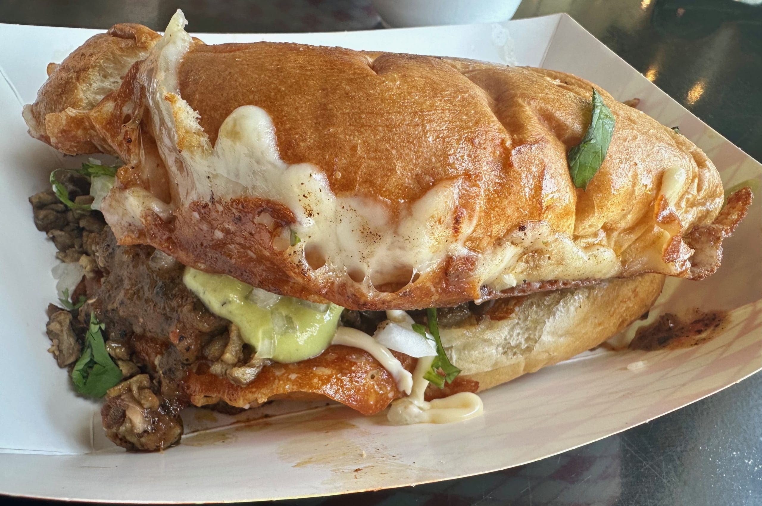 23 April 2025: Since its launch as a brick-and-mortar operation in 2024, Rio Tacos has expanded its menu to showcase even more Mexican cuisine deliciousness. Among the very welcome additions are tortas, the ubiquitous Mexican sandwich I prefer to tacos and burritos. Tortas are available with your choice of proteins (carne asada, al pastor, chicken, potato soyrizo and barbacoa). Though my favorite tortas are usually constructed with barbacoa, Rio Tacos’ carne asada is so good I changed things up…to glorious results. The torta de carne asada (Mexican sandwich filed with choice of meat, crusted cheese and topped with mexican mayo, sliced tomato, pickled jalapeno onions, cilantro and onions) is a superb sandwich, one sure to sate your appetite while enveloping you in joy. It’s one of the very best tortas I’ve had.