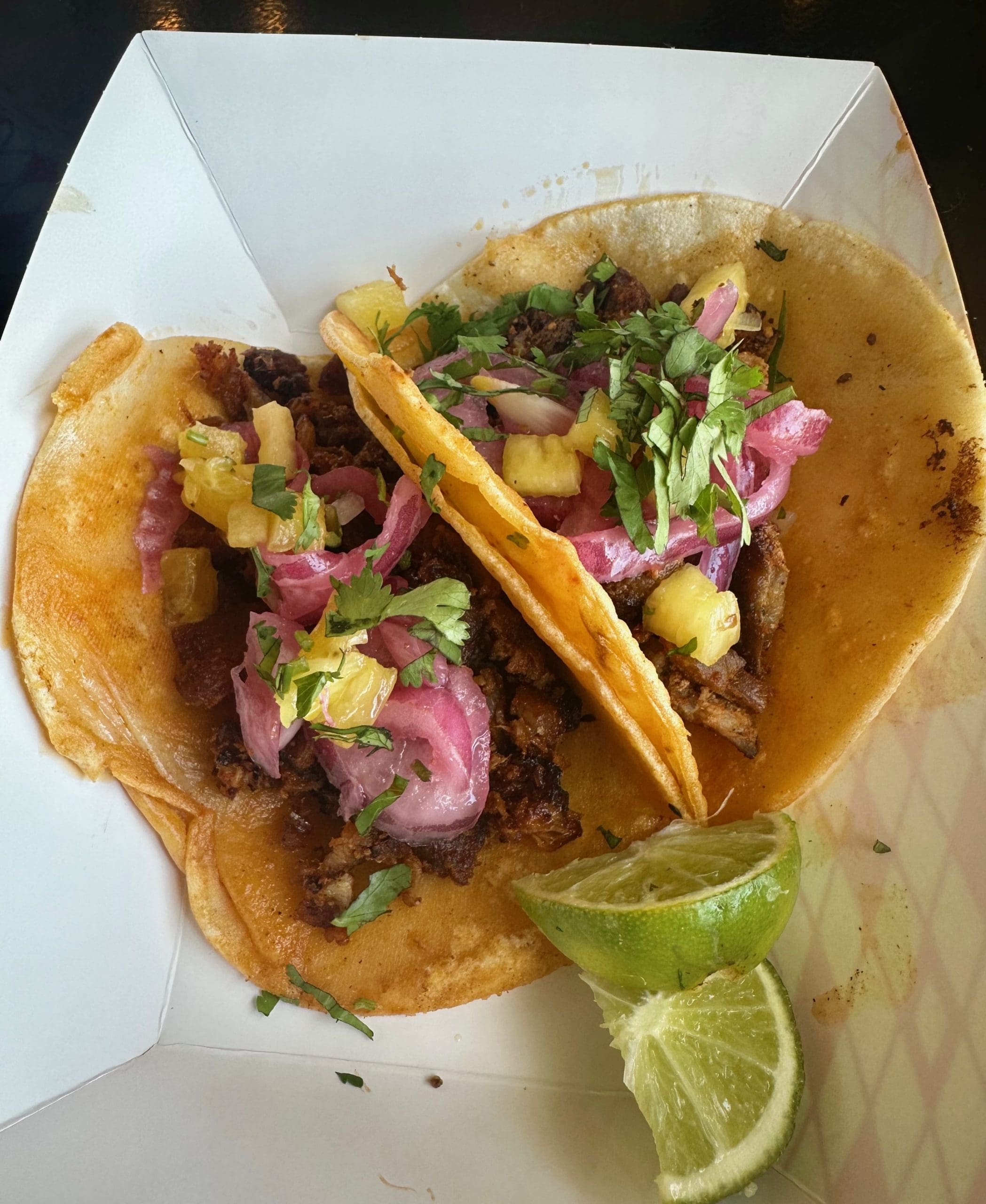 When my Corrales compadre, the extraordinary photographer Bruce Terzes told me about Rio Tacos I was rather skeptical even though Bruce has never let me down. His recommendations tend to be on point. Still, I was half expecting “the usual” Duke City taco. When Bruce first told me of Rio Tacos, owner-chef Fernando Rios was plying his craft out of a food truck. Like a devoted groupie, Bruce followed Rio Tacos wherever it went–to parks and breweries throughout Rio Rancho, Corrales and the West Side area. He was beyond excited when in April, 2024, Rio Tacos launched a brick-and-mortar shop on Alameda (just west of the wonderful Oak Tree Cafe).