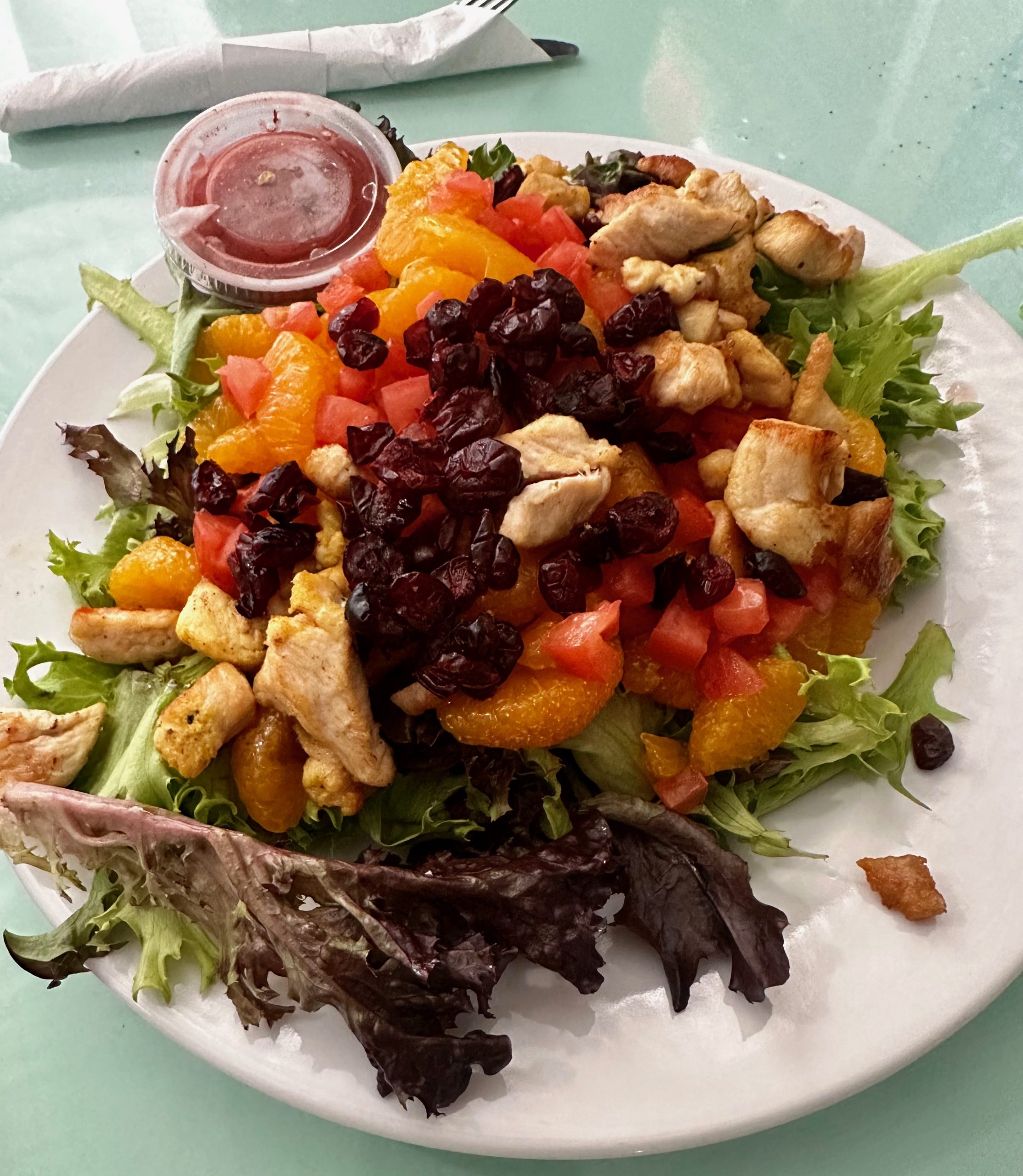 My Kim doesn’t particularly like burgers so she ordered a chicken salad (mixed greens, Mandarin oranges, craisins, tomatoes, chicken drizzled with a raspberry vinaigrette) that isn’t on the menu. This salad, too, could have been great…if only the chicken wasn’t so dry and leathery. There’s no doubt the commonality among every item we ordered is proteins overdone to the point of a New Mexico summer dryness. It’s something a scratch kitchen can and should fix!