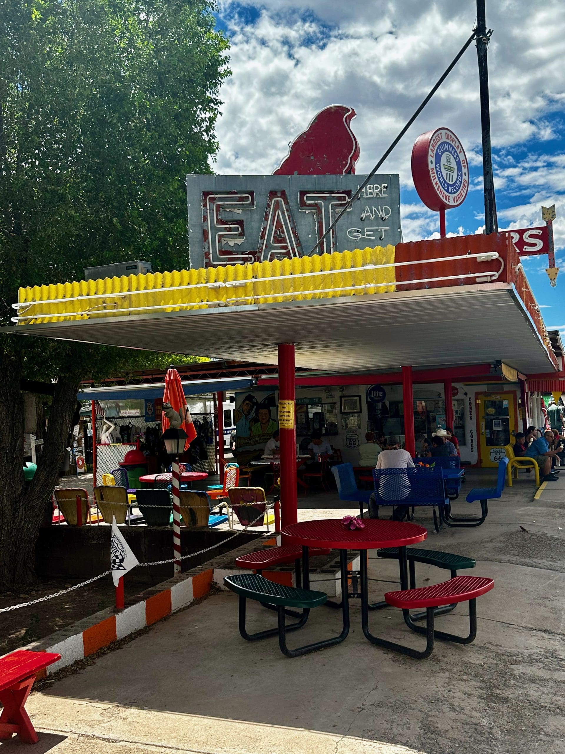 After his Army discharge, Juan Delgadillo worked for the railroad in Seligman, earning the nickname “The Scrapper” because he would take scraps of lumber to his roadside property which he ultimately used to build Snow Cap Drive-In. His restaurant opened in 1953. The Snow Cap has become synonymous with Seligman as well as Americana. It’s one of the most colorful and kitschy restaurants along Route 66 as well as one of the best reasons to take a break from the monotony of driving. There’s something to see at every turn on the roadside attraction slash restaurant. The Snow Cap also offers some of the best milk shakes in Arizona, a state in which staying hydrated is essential.
