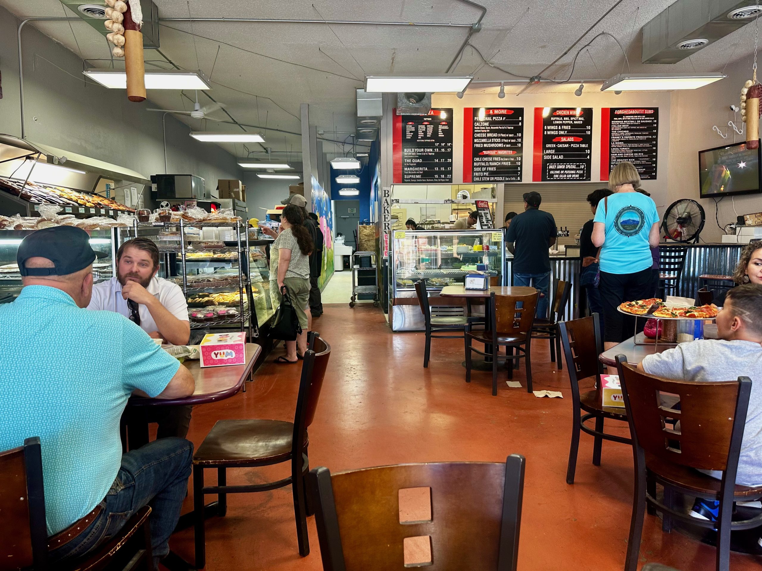 The jury will please disregard my last post. Donuts are not 50 cents on Fridays, however late in the day they do offer discounts. There are other interesting things I learned today which may be of interest. All through March they’re going to have fish and chips. I thought it was just going to be a Friday special but my companion understood that it was going to be every day. There are some other good specials on different days. For taco Tuesday they do a Navajo taco, which my companion told me is really good. Wednesday is Chicago dog day. Our server’s favorite is quesadilla Thursday, where you can choose between chicken, roast beef or vegetable. A different friend said he was intrigued by the idea of a roast beef quesadilla so he ordered one and was surprised to find it was very good. On Fridays you can get a 16 inch unlimited topping pizza, salad, wings and a dessert. They should call that Feed the Family Friday. I’ve always gone there primarily for their baked goods but some of these food offers are interesting. I’ve only ever tried their pizza and that disappointing meatball sandwich (on fabulous bread!) But I’m willing to try some of their other offerings at such inflation fighting prices.
