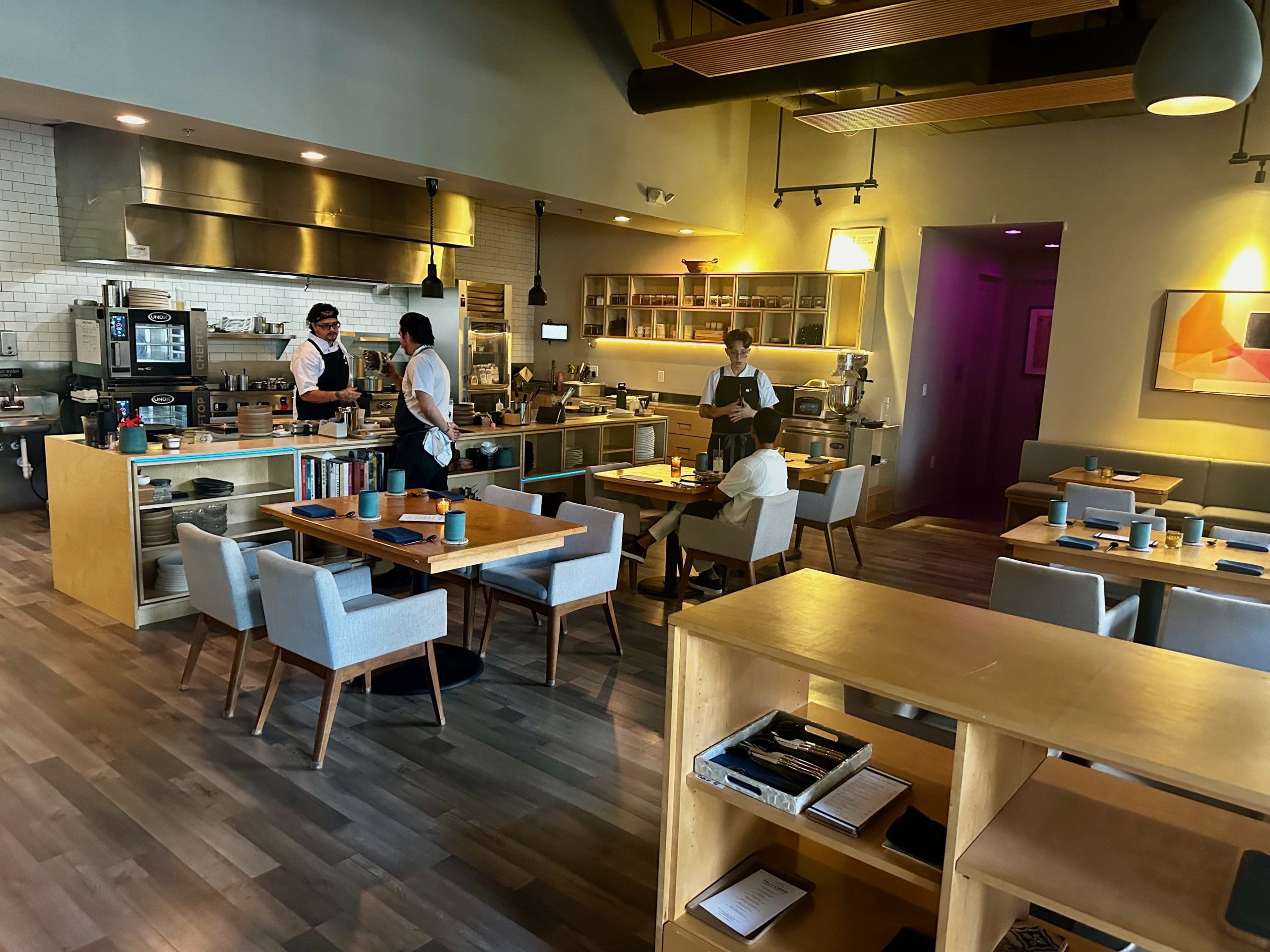 It soon became apparent that the only limit to Mixtli’s continued growth and success was its tiny quarters. Reservations for the twelve seats were the toughest ticket in town. After significant searching, they found an airy location in the flourishing Southtown neighborhood. The indefatigable co-owners designed the space and selected the furniture and art themselves. Mixtli began a new era in June, 2021. Their new venue seats up to 43 diners, including overflow space on a patio. On the Wednesday evening of my visit, ten diners had the entire restaurant to themselves.