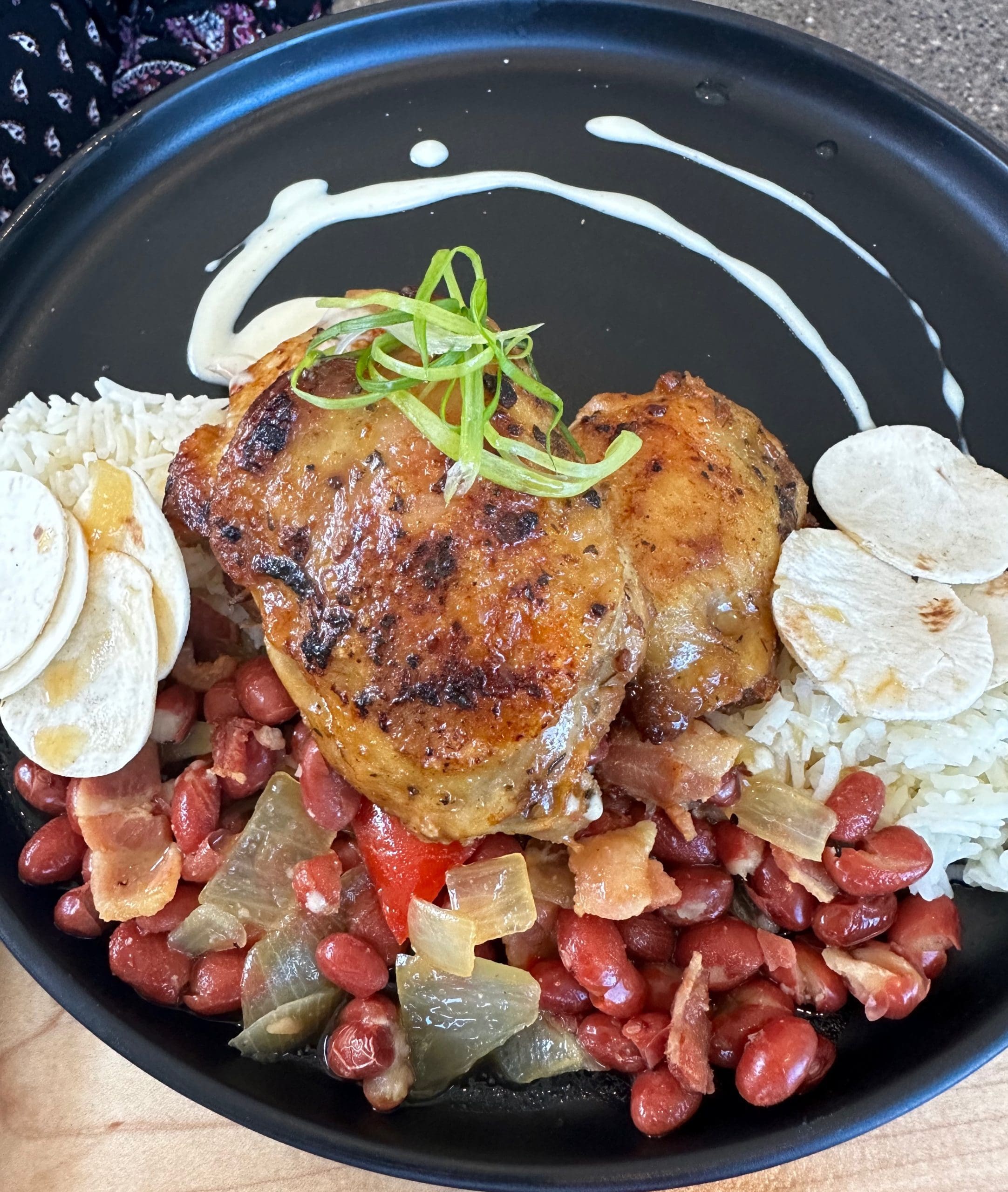27 September 2024: One commonality among many of us scions of Spain is being weaned on arroz con pollo. During my years in Boston, I had several Puerto Rican friends who would invite me to their homes for plates brimming with arroz con pollo, often with chicken. Chef Quiñones, himself of Puerto Rican lineage, added beans (cooked with bacon, onions and tomatoes) to Ex Novo’s version of arroz con pollo (all-natural crispy skin chicken thighs, basmati rice, red beans). For the both of us, arroz con pollo is a quintessential comfort food, one that warms the heart.