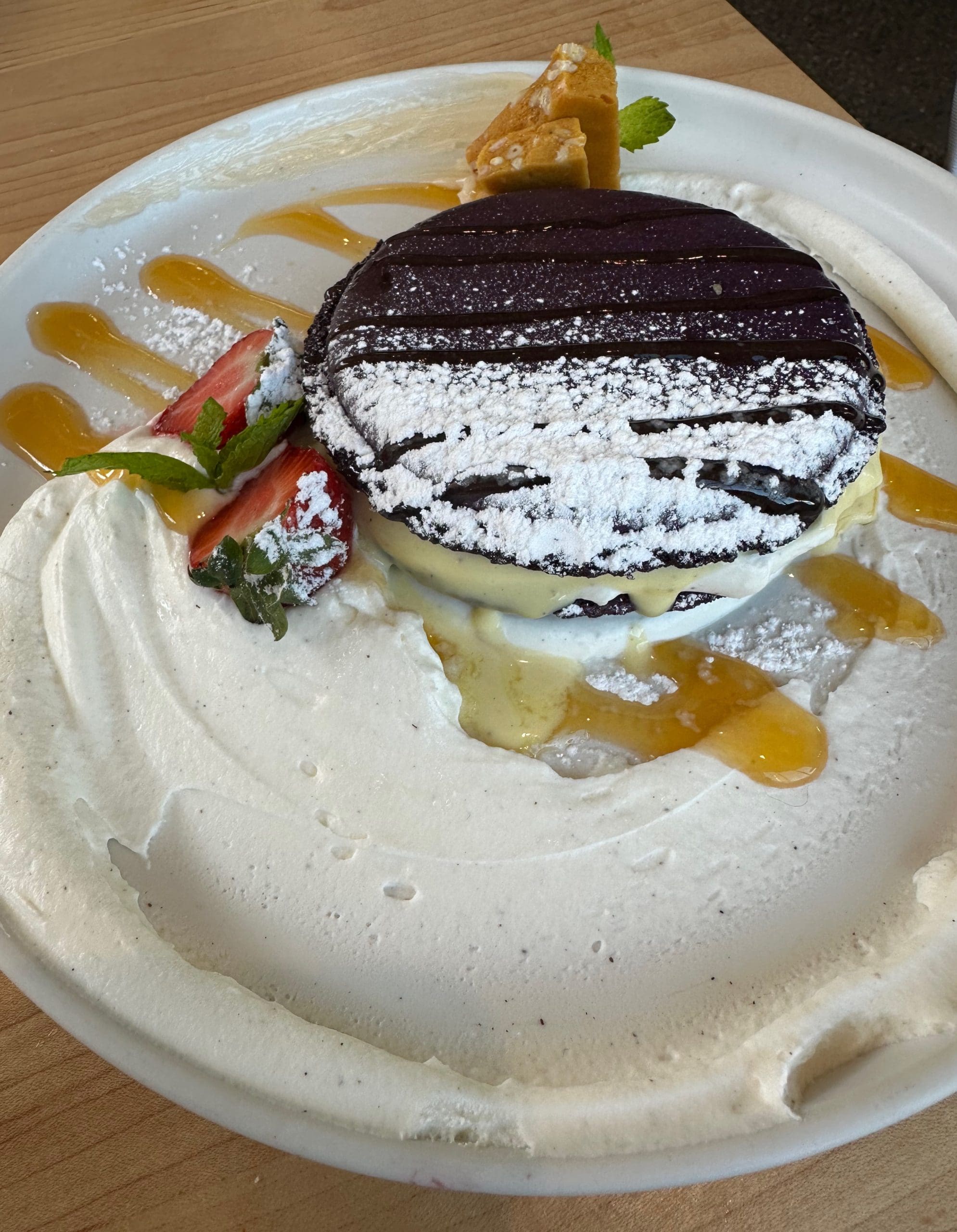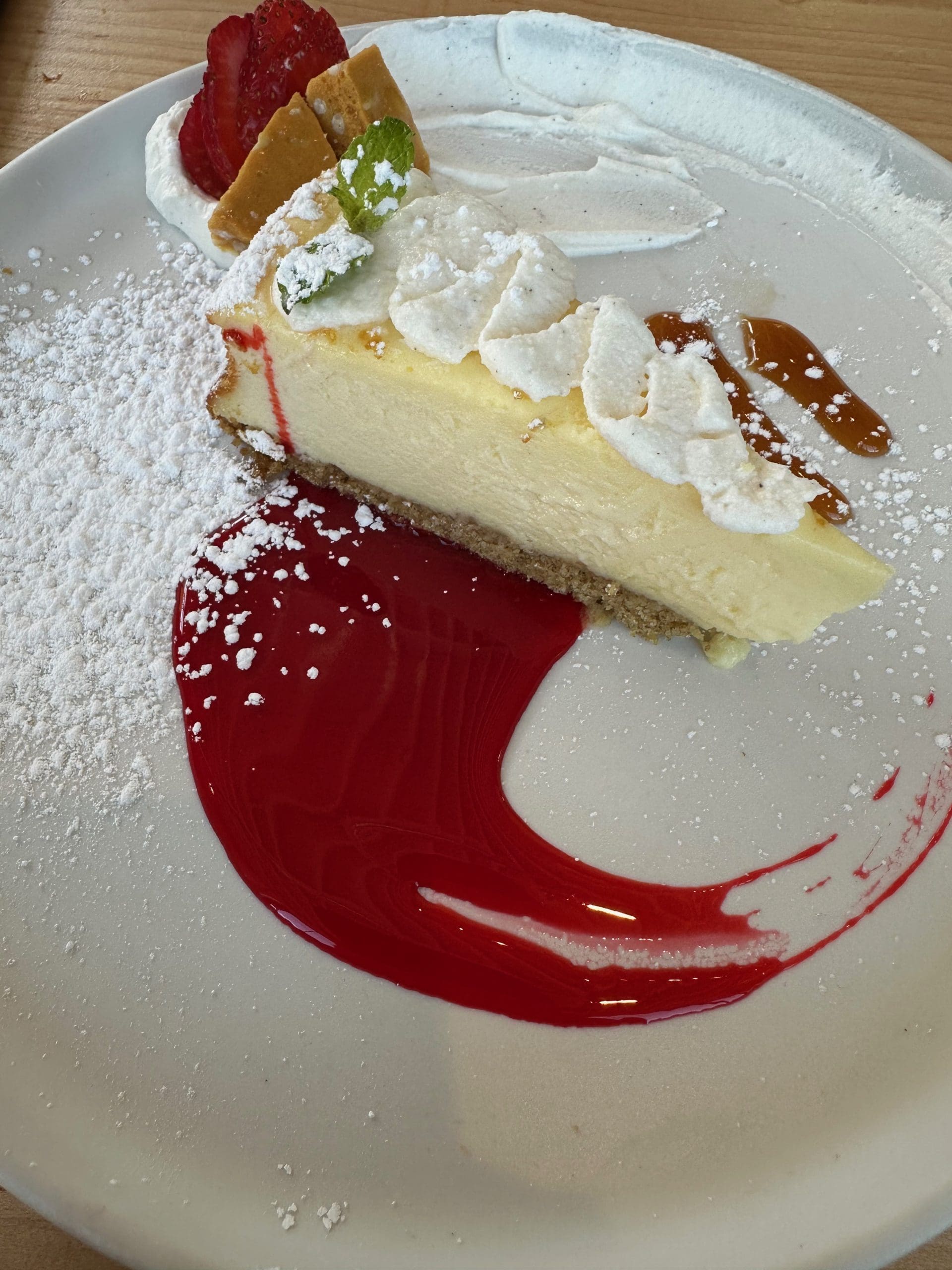 27 September 2024: Not every restaurant the caliber of Ex Novo can boast of world-class desserts to top off an incomparable meal. Sous chef Meghan Lewis ferried two “better than a birthday cake” desserts to our table. First was a fabulous eggnogg tres leches cheesecake (eggnogg crème Anglaise, five pepper raspberry puree). I had one forkful before visiting the kitchen to commend the staff for a tremendous early dinner. My Kim told me it was one of the best desserts she’s ever had. She’s the dessert person in our family so I’ll have to take her word for it.
