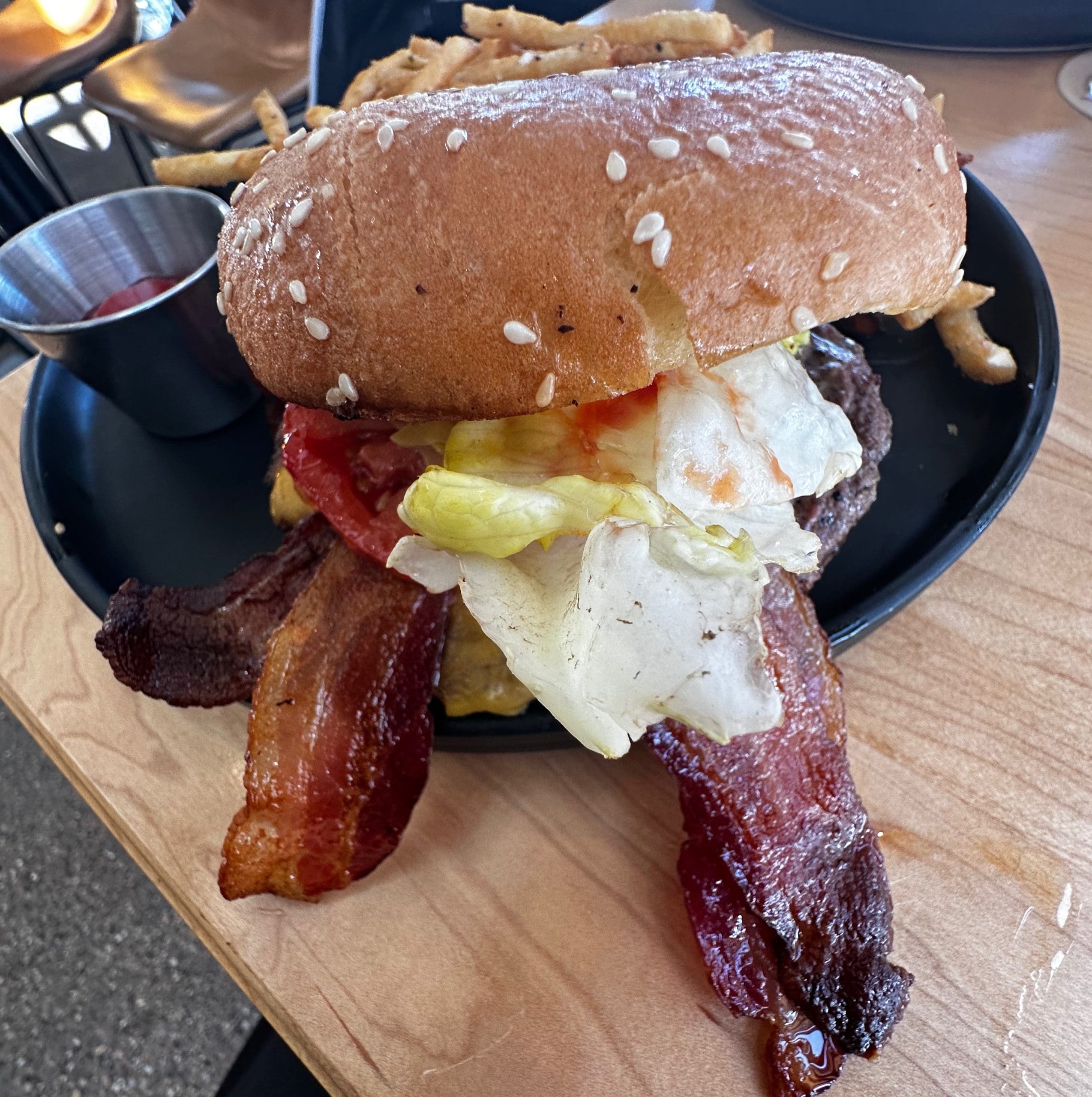 Ever since I’ve been nagging Chef Quiñones to offer that burger on the menu at the kitchens he’s led. He’s often told me to order the “Copycat Burger” (house ketchup, house mustard, honey-bacon, Tucumcari Chedar, sirloin-brisket blend) served with fries. I’m at the point in my advanced geriatric progression where burgers just don’t taste right (or good) without New Mexico’s sacrosanct green chile. So, let me make a bold proclamation. The Copycat Burger is THE BEST burger that doesn’t include green chile in the Land of Enchantment. It’s moist, juicy, packed with bacon and it’s absolutely delicious. Every bite brought joy to my taste buds. This burger is so good, it would be competitive in a green chile cheeseburger competition–even without the green chile. What a find! Yes, the Copycat Burger would be better with green chile, but then so would just about any other food.