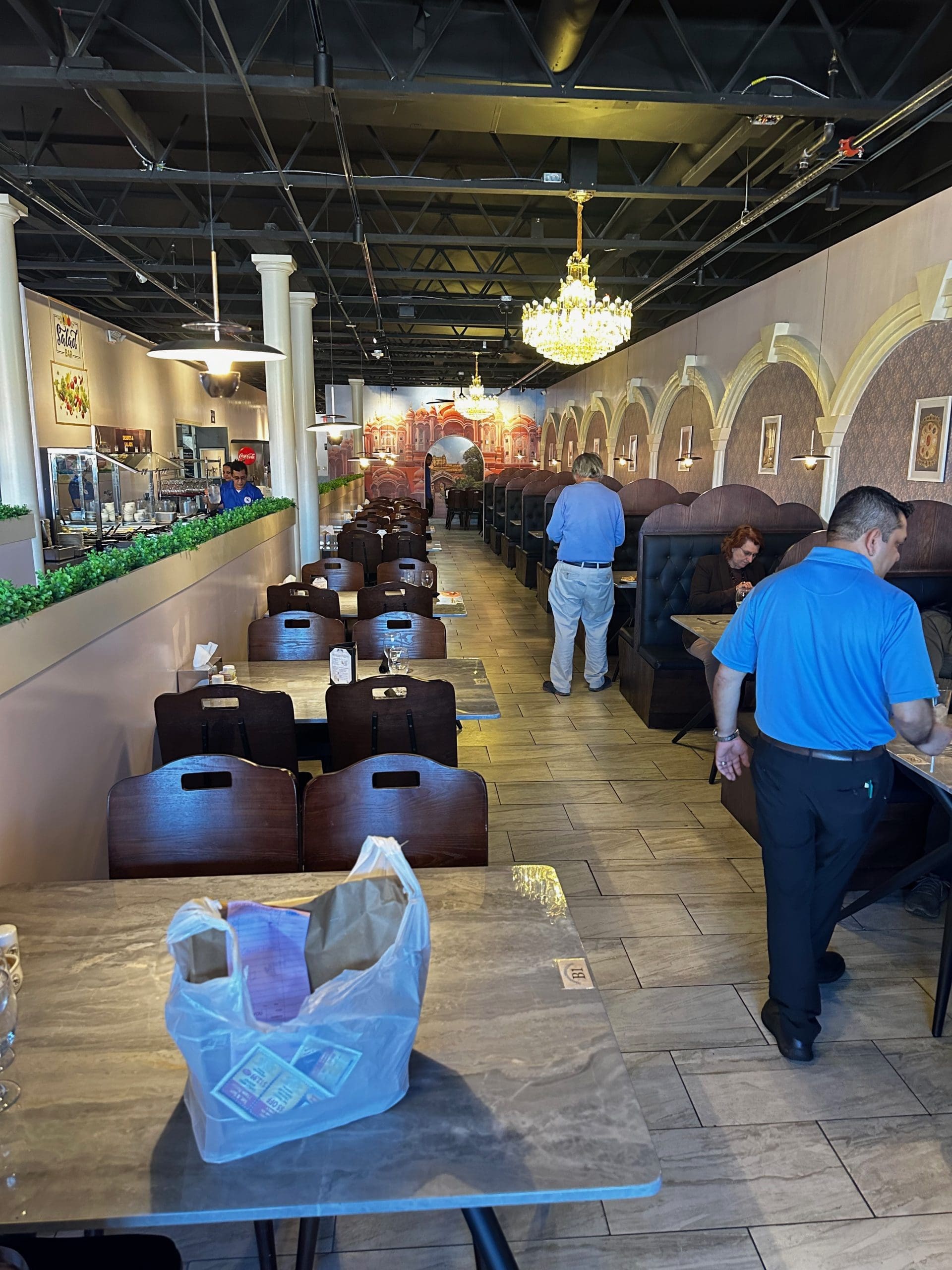 I’d like to share some of my observations about the buffet for those of your readers who might be interested. I myself often get the buffet, especially if I’m eating at an East Indian restaurant for the first time. If the latter, it’s a great way to sample their culinary tastes and preparation skills. If not, I always want several things when I dine at an Indian restaurant. 1. Saag. Paneer, okay, I mostly want the creamed spinach with flavors other than butter and salt. 2. Another vegetable dish, preferably one with potato. Indian spices bring out the very best in any and all vegetables. 3. A chicken dish. I love tandoori meats, but not on the bone the way your Kim does. I like that marinated clay oven baked chicken, ripped off the bone and added to one of the many “gravies” (Kim’s word; I think it’s cute) that Indian cooking is known for. Masala. Butter chicken. That coconut curry I can never remember the name of. Anyway, there you are — I would have to order three entrees! Much more cost effective to get the buffet. Bonus if they offer samosas or idli. Then of course there’s often lovely fresh fruit and dessert included. I perused the buffet at Maharaja and found it lacking, but luckily for me, the husband signed up so I was able to sample some of my aforementioned favorites. Their cooking style is decidedly different than other Indian restaurants in the Burque (and I believe I’ve tried them all.) I’m not knowledgeable enough to say, oh yes, this is clearly northern Indian cuisine or whatever region, and I’m not calling good or bad. It’s just different. John devoured at least two full plates and was very happy with all of it. On the flip side, I ordered Chicken Tikka Masala for myself and it was not different. The sauce was as I expected and was creamy and delicious. The chicken was very tender. I devoured the entire dish; so much for leftovers! The Maharaja is stunningly decorated and they are being very ambitious and optimistic with their two huge dining rooms. It would be a perfect venue for a wedding or any other celebratory occasion. Definitely a welcome addition to our dining options. I wish them all the best and am anxious to see what others think as they venture there and sample their cuisine.