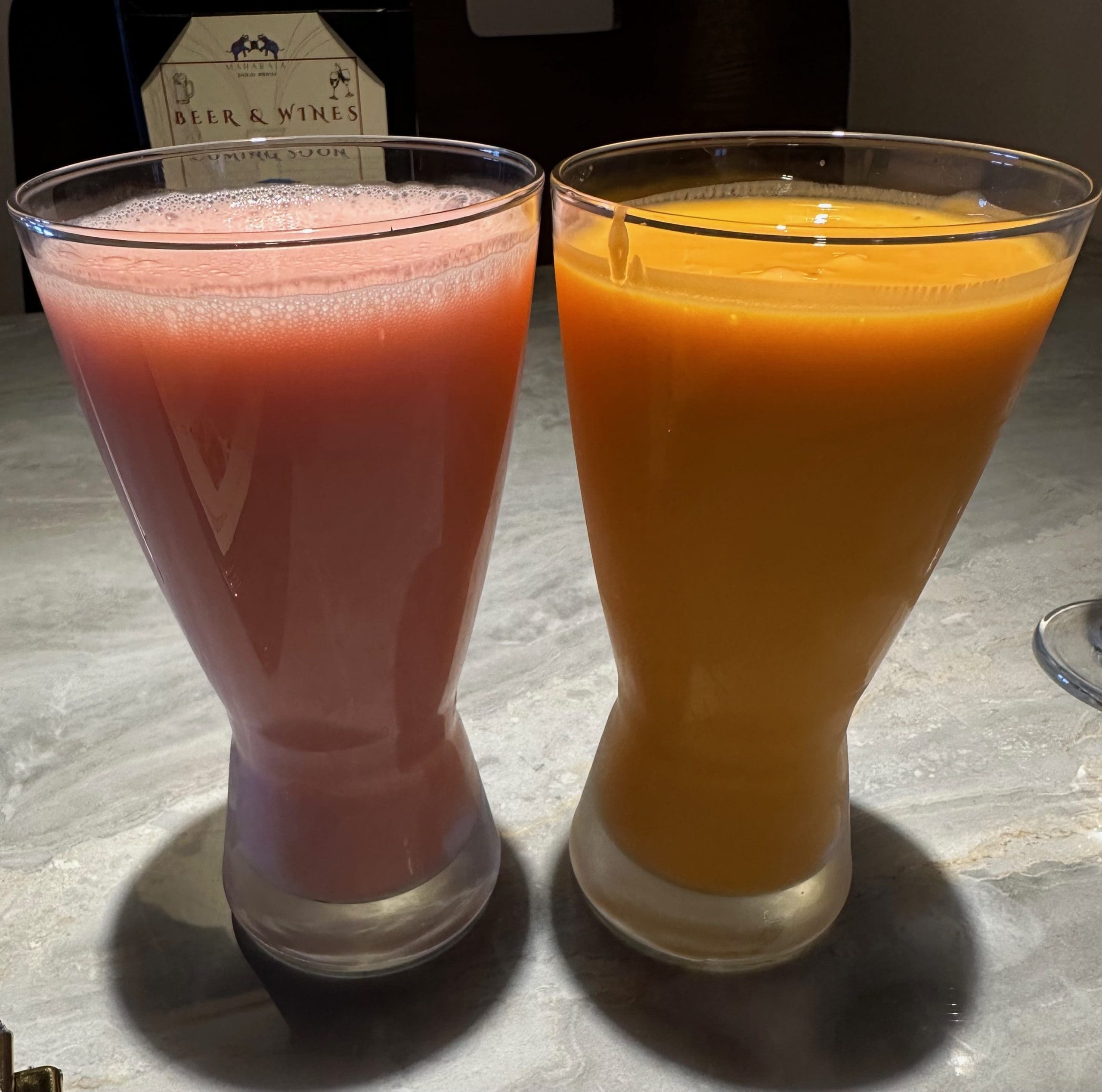 23 October 2024: Recipes of India explains “Lassi is a cooling, refreshing, probiotic drink perfect for the warm summer months made essentially with curd or yogurt, sugar or salt, spices or flavoring ingredients like green cardamom, saffron or rose water. Popular in Punjab and North India, there are many variations of a lassi recipe, including mango lassi, dry fruits lassi, and malai lassi.” Though we may differ in our choice of entrees, my Kim and I agree on having lassi with every meal of Indian cuisine. Typically this has meant mango lassi, but Maharaja offers a lassi we didn’t know existed: strawberry lassi. Both were refreshing and delicious.