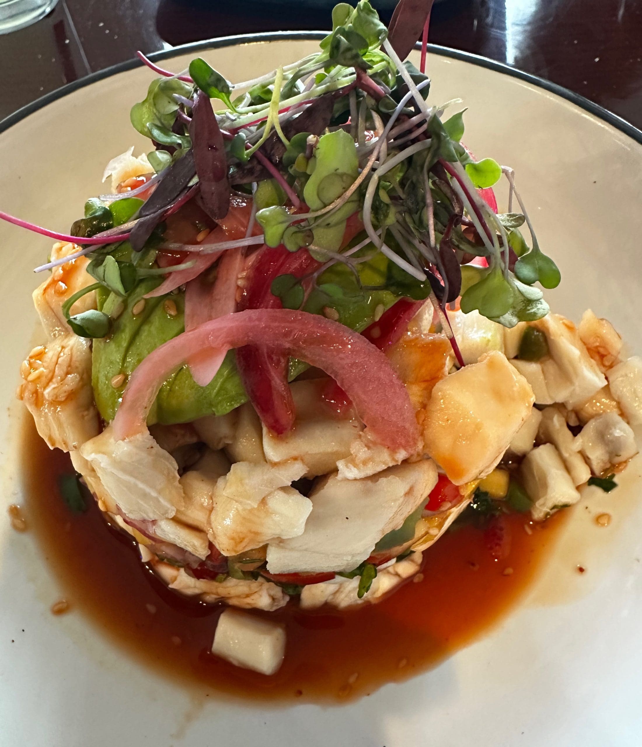 11 November 2024: The most difficult decision for me what in deciding what entree to order from so many varied categories: Rice Bowls, Tacos, Enchiladas; Burritos, Chimichangas and Quesadillas; Seafood, Platos Fuertes, Fajitas and Crudos. Several items and even greater variety are available within each category. Honestly, you’ll have a heckuva time deciding what to order. Ultimately, I made an eenie meenie miney mo decision and opted for the torre de mariscos, a seafood tower described on the menu as “tower of delicious ceviche style seafood including shrimp, scallops, mahi-mahi layered with avocado, mango, cucumber and red onions and a very flavorful sauce.” This is a fun tower to descend as you polish off one layer after another. The seafood is very fresh and so tasty from its citrus marinade.