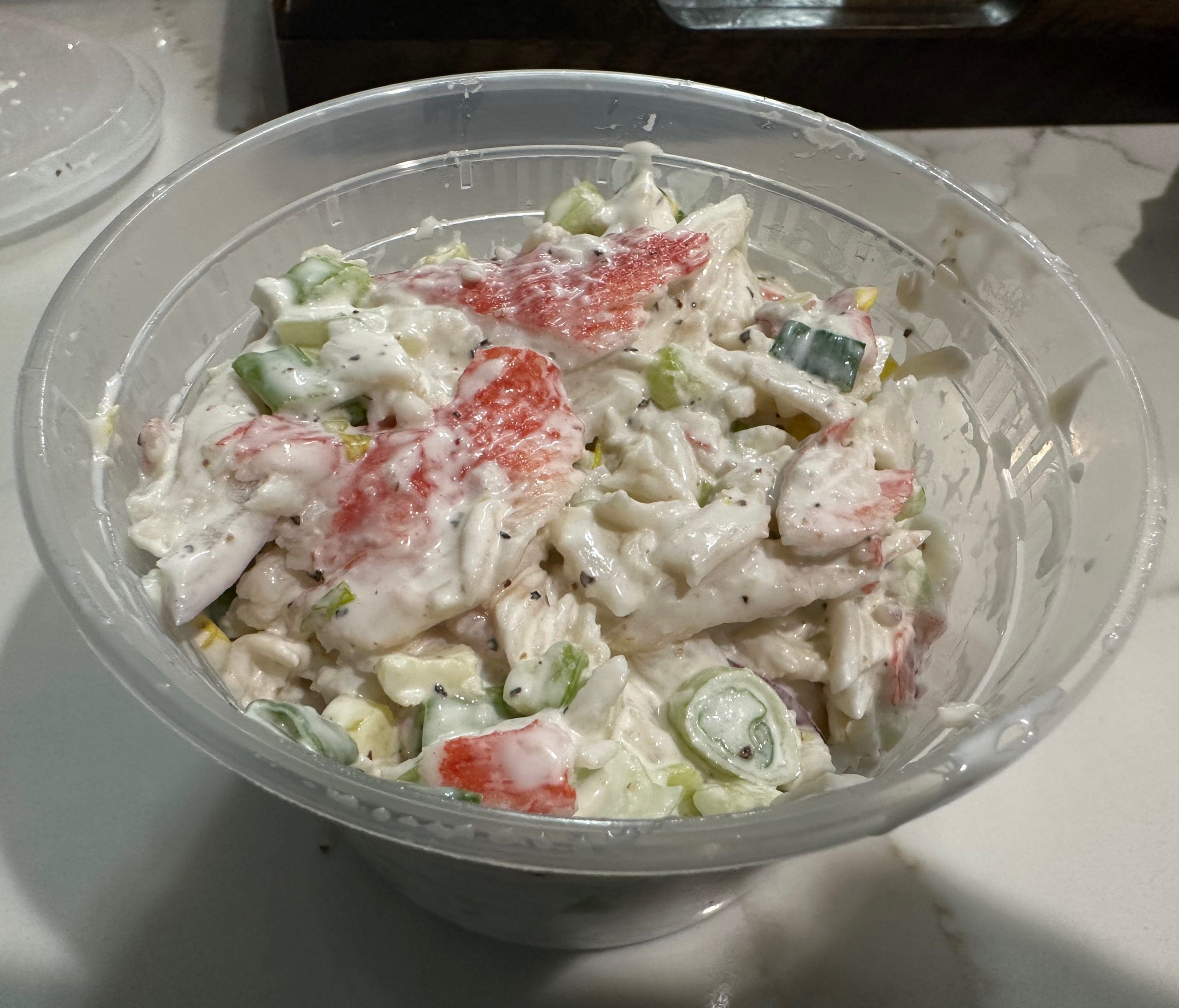 While standing in line waiting for my sandwich to be constructed, it was impossible not to notice all the salads on display. Every one of them looked absolutely delectable, but the seafood salad (crab, red pepper, celery, scallions, pasta and a mayo-based dressing) called loudest. There’s a netful of crab in this salad, the real stuff. The melange of flavors and textures made for a delightful side…so good I polished off more than half of it in addition to my Italian Stallion.