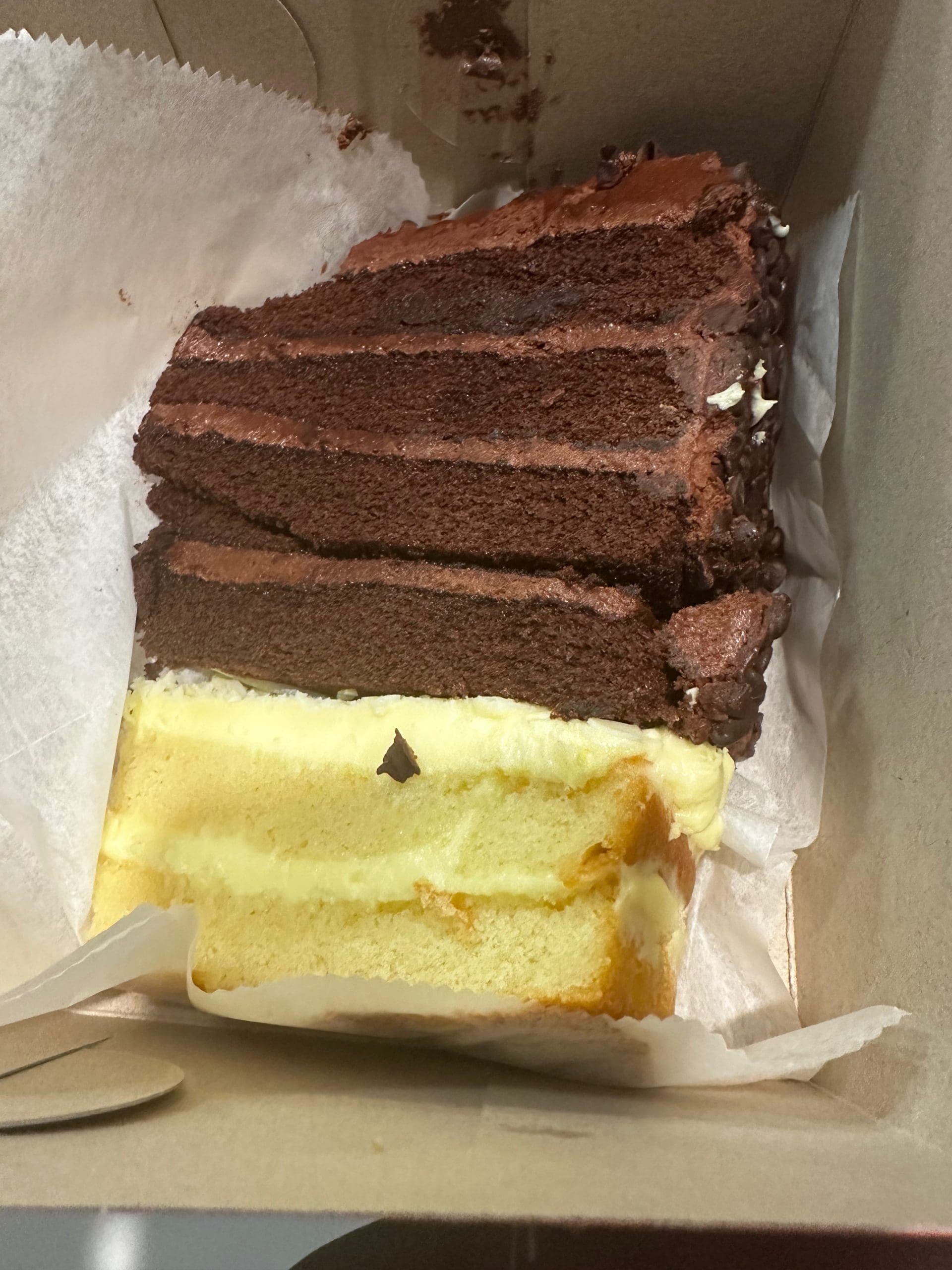 For dessert, my Kim enjoyed a thick slab of rich, delicious chocolate cake while I enjoyed a luscious lemoncello cake. My Kim called her chocolate cake the equivalent of Portillo’s which means it’s her standard-bearer. That chocolate cake was skyscraper tall, about twice as tall as the lemoncello (I feel so cheated). Other desserts included Napoleons, cannoli, baklava, cheesecake, coconut maroons and a number of other delightful treats.