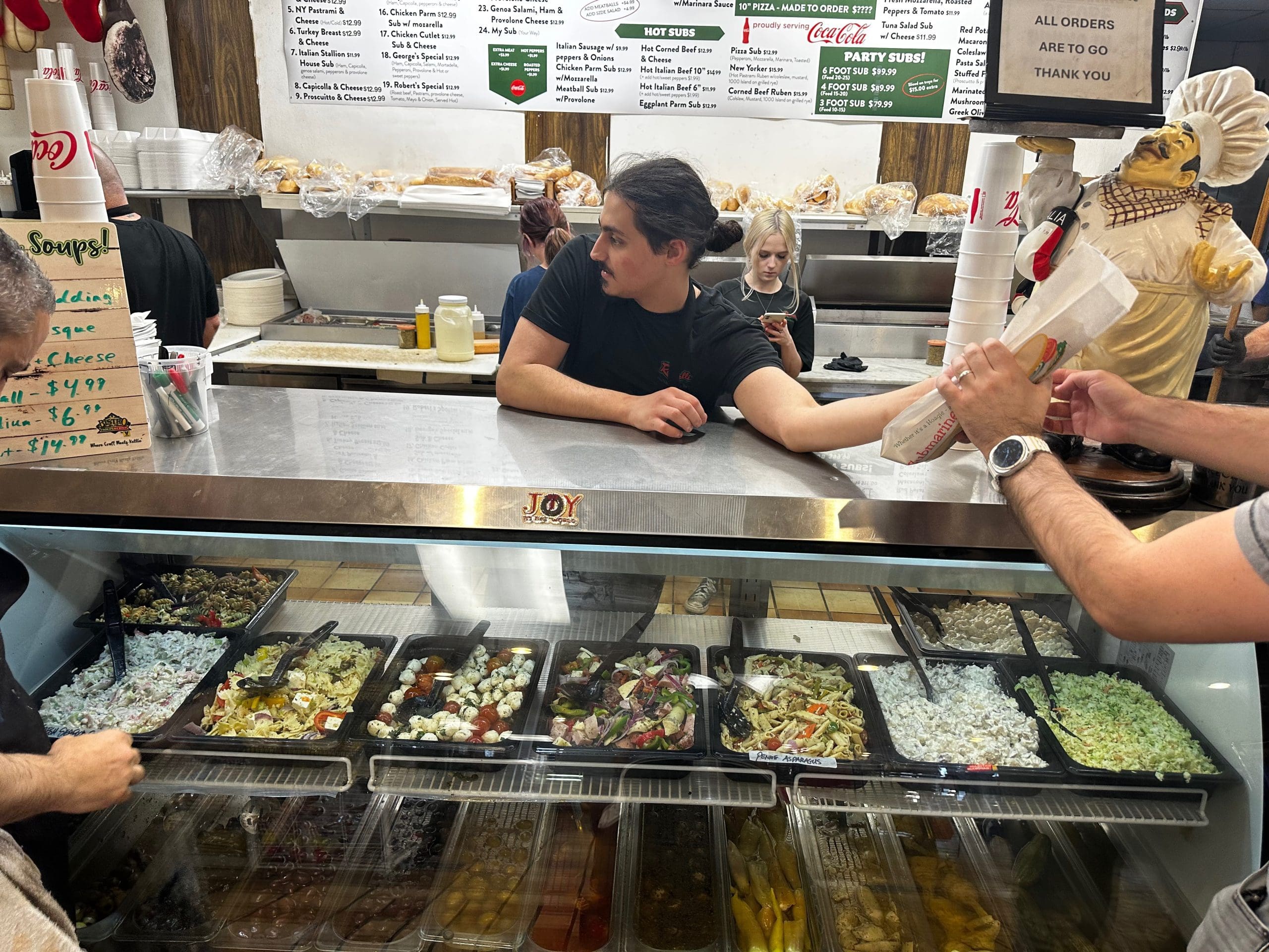 Nor is your tactile sense omitted. Picking up one of those hefty ten-inch subs will give you a sense for how densely packed with meats and condiments a sandwich can be. And when you wrap your fingers around that light, springy bread, your appreciation for the construction of your sub grows exponentially. It would be easy to ascribe your sense of hearing to the crunching sound made when you chew on a crisp salad, but where your hearing is really exercised is in listening to the conversations among the staff, most of whom are family, Italian and New Yorkers. Both unabashed volume and snarkiness are on display. And don’t make the mistake as my Kim did of bragging you’re from Chicago. She may as well have told them the Yankees belong in Triple A baseball.