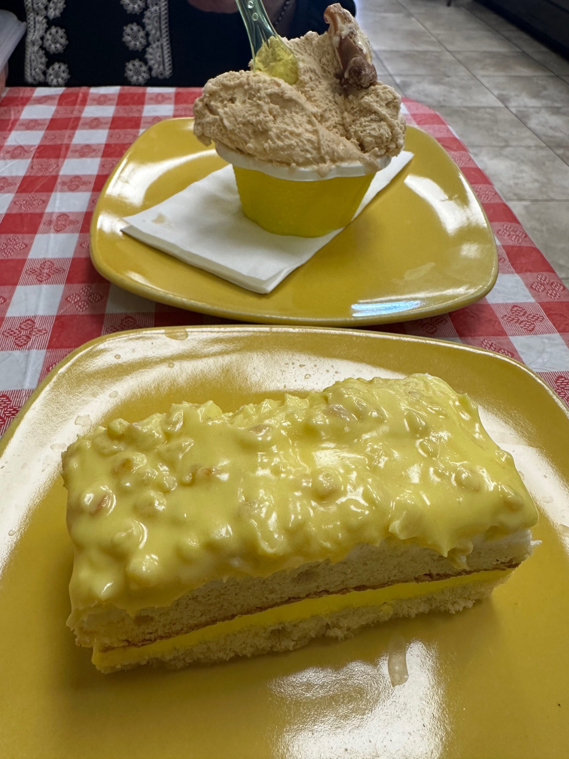 3 January 2025: Sitting in close proximity to the dessert case, I thought my Kim would go for one of the spectacular treats under glass. I was surprised there weren’t drool tracks on that glass considering what was available: tiramisu, profiterols, pistachio ricotta cheesecake, Napoleon cake, Italian lemon cake, lemoncello cake and more, all exemplars of Marica’s pastry skills. Instead, my Kim opted for more of Dolce Vita’s amazing gelato. This time it was two scoops of dulce de leche gelato, not the family size portion this time.