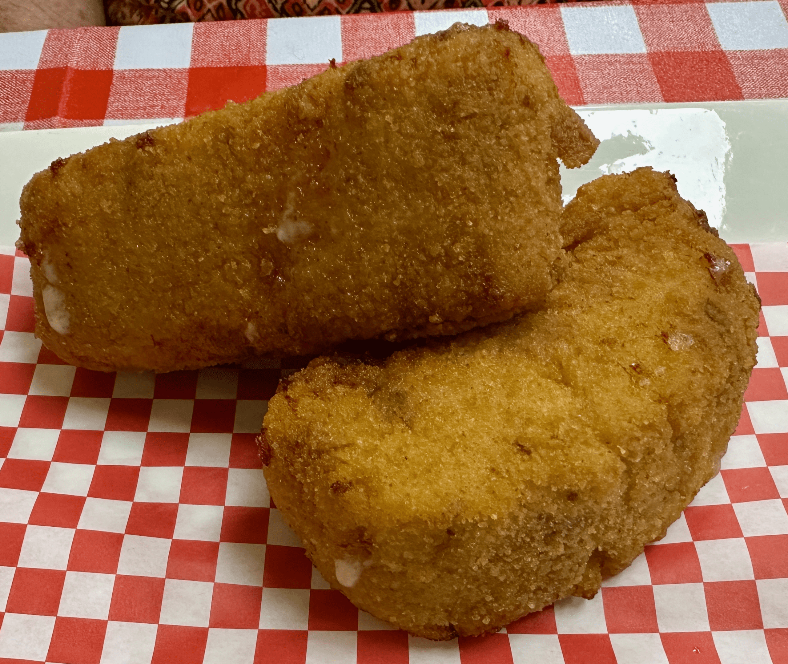 22 December 2025: Having fallen in love with the fried pizza, my Kim thought she’d try her luck with fried pasta (pasta with sausages, ham and mozzarella). It may remind you of mozzarrella sticks in that like the popular starter, a bread crums and egg wash crust forms over the sausage, ham and mozzarella. It’s unique and surprisingly good though it may have been even better with a marinara sauce in which to dip the fried pasta.