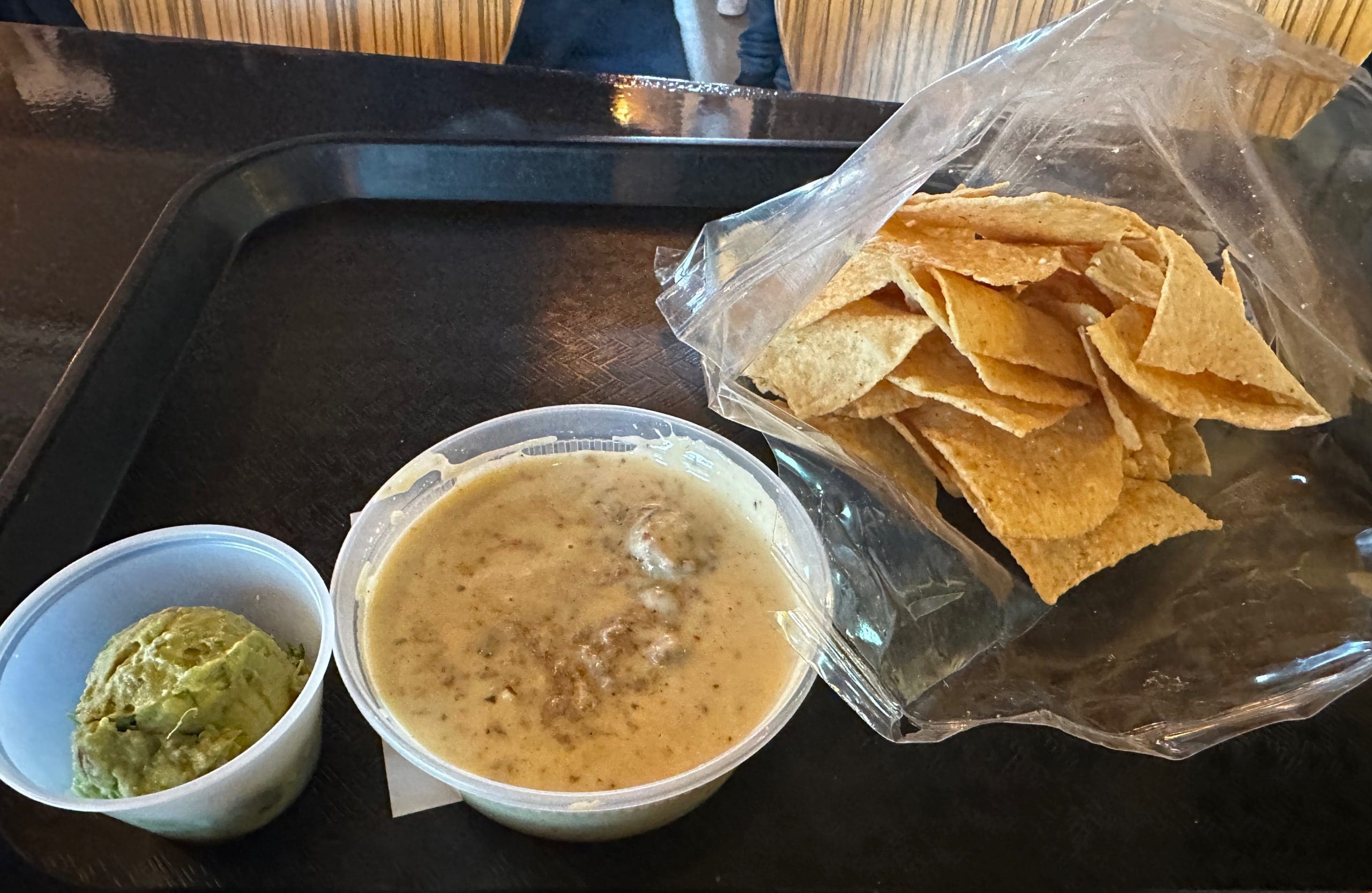 Though classic (crinkle cut fries, tots, battered onion rolls) are available, sides also include potato latkes (with Hatch green chile and Chedddar) and homeboy chile con queso with chips. Ground beef is more prevalent than chile which again barely registers. A side of rich, creamy guacamole is also provided. A sealed bag of chips should last you, but the gracious staff will provide another should you polish off the one provided.
