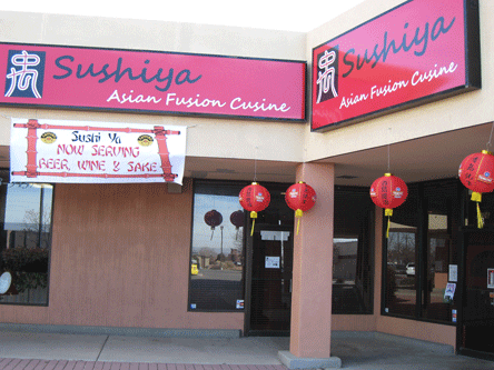 Sushiya is located in a Far Northeast Heights strip mall with Albertson’s as its anchor tenant. It’s ensconced in the strip mall’s southeast corner and has prominent red signage on two walls so you won’t miss it. Previous tenants at this location include Porky’s Pride BBQ. Within months after its opening, both the Alibi and Local IQ had reviewed Sushiya, raving about the sushi. More than 90 percent of respondents to Urbanspoon indicate they like it, placing it among the most popular restaurants in the Duke City area.
