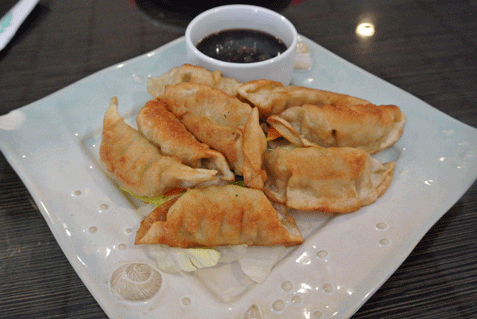 The appetizer menu also includes a de rigueur Japanese dumplings (Gyoza) which you can request be prepared pan-fried, steamed or deep-fried. The dumplings are stuffed with chicken and served with a sauce whose flavor profile was entirely dominated by soy sauce, rendering it entirely too salty. Because of the saltiness, the dumplings are better by themselves. Oh, and you’ll want to request the low-salt soy sauce for your sushi rolls because the house soy sauce could use serious desalinization.