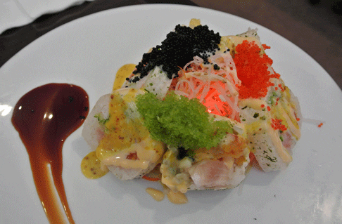 The sushi menu is replete with cleverly named, inviting delicacies with a nice selection of both raw and cooked sushi. On the signature items section of the menu, you’ll find such intriguing sushi sobriquets as Buddha Belly, Yankee, Fantasy and Crunchy. The Crunchy lives up to its name. It’s shrimp, crab and avocado coated in a tempura batter and deep-fried. The exterior is crispy thanks to a tempura that is lacy and delicate. The interior is moist and delicious. It’s a balanced maki roll any aficionado of tempura and sushi should enjoy.