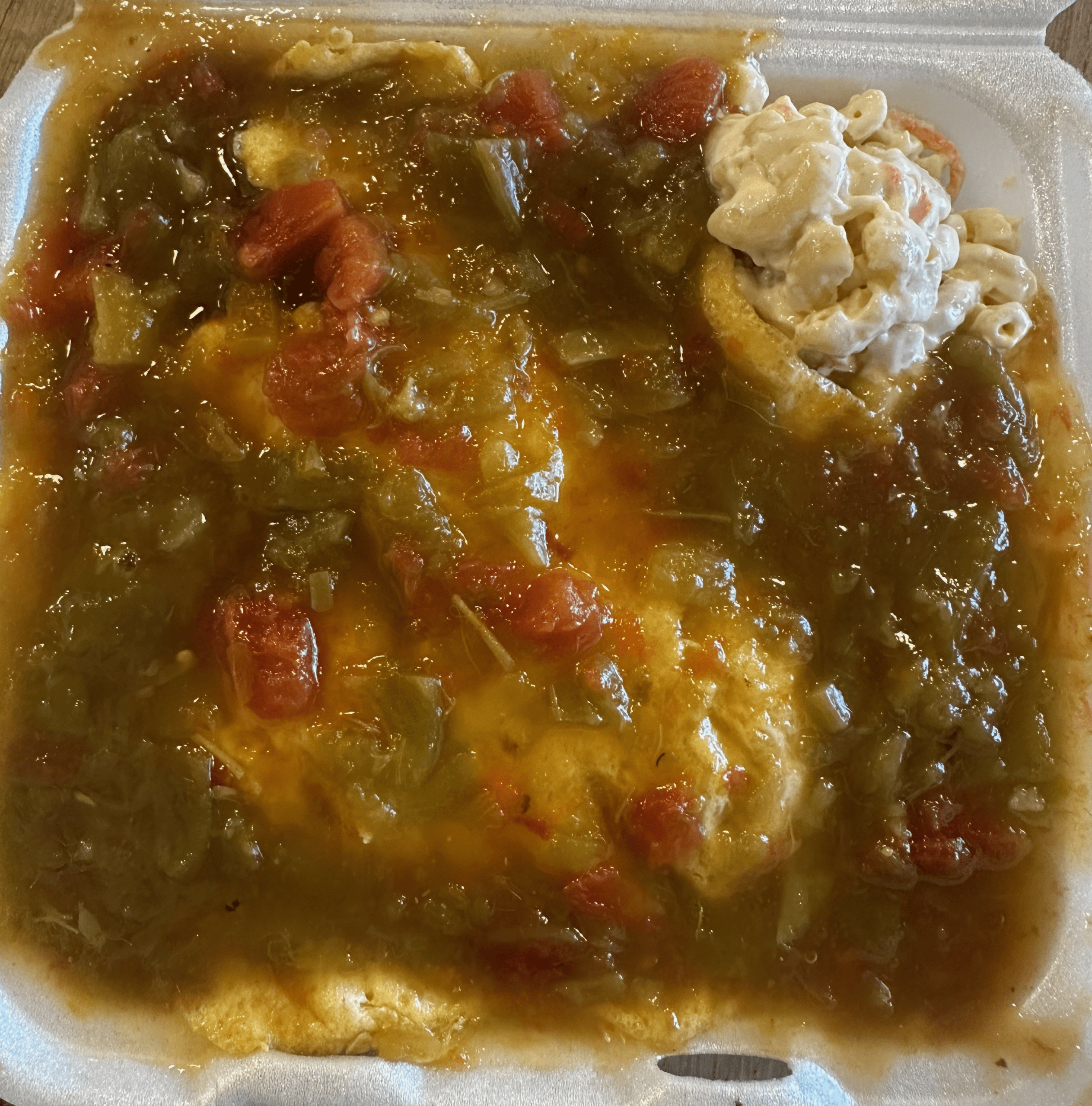 We recently went to Hawai’i (early May), and ate at L&L. I found the BBQ to be adequate, but nothing to rave about. I had a combo that came with garlic shrimp. The shrimp were WAY too garlicky…a phrase I rarely use, as I LOVE garlic. However, the highlight for me was the macaroni salad. I hope you were able to try it without the green chile, as it was rather tasty. Though, I agree, the green chile will probably make it better. I def want to try L&L because, like you, the brown gravy on a loco moco just seems rather boring and not as tasty.