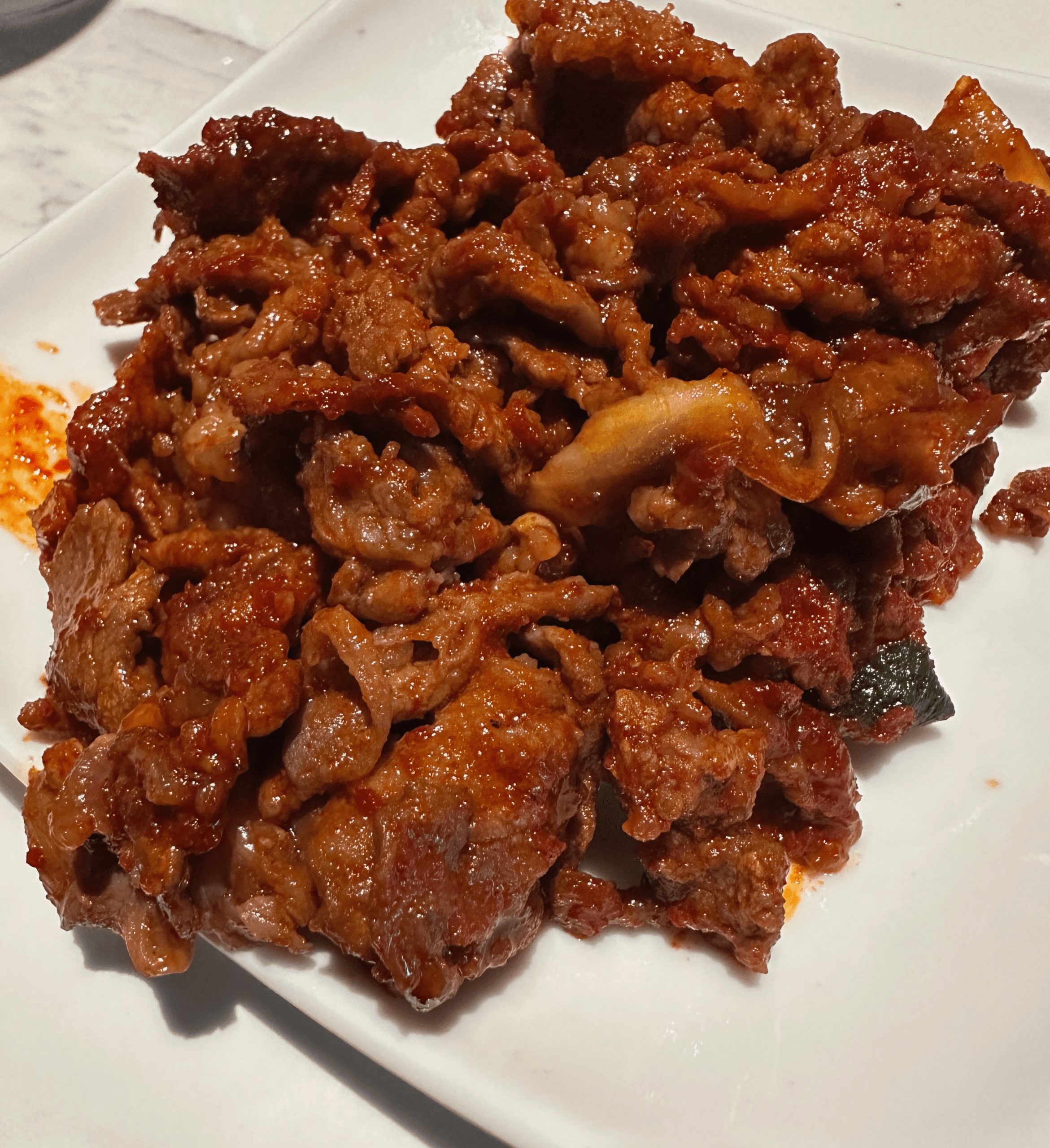 BEST BET: Spicy Beef Bulgogi, Beef Bulgogi, Galbi, Spicy Baby Octopus, Kimchi, Egg Roll, Spicy Szechuan Soup, Beef Belly, Spicy Calamari, Premium Ribeye Steak