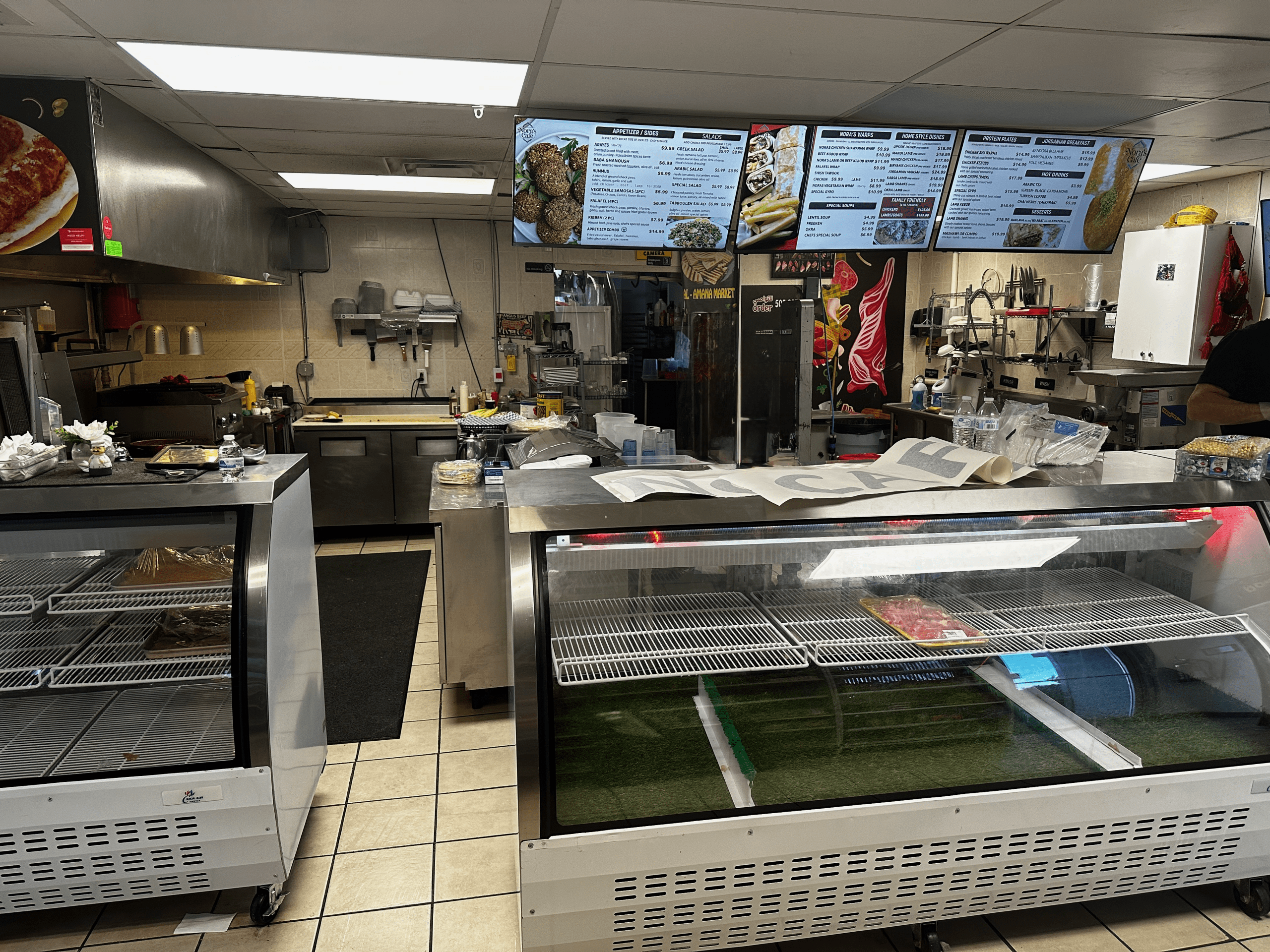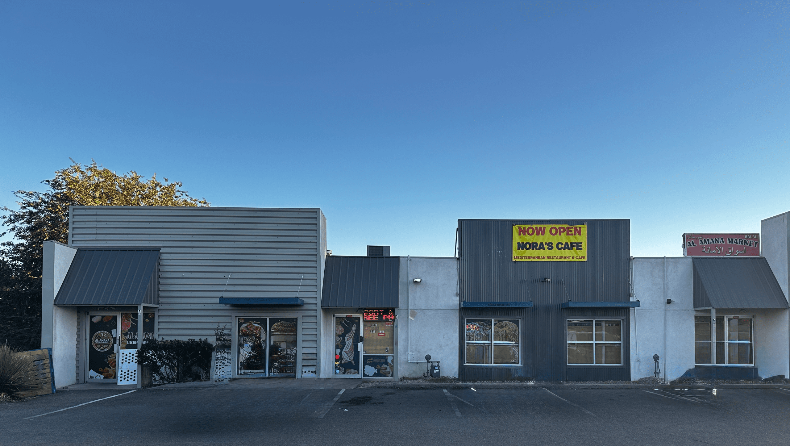 Nora’s is located on Menaul closer to Juan Tabo than to Eubank. Immediately next door is the Alamana Market where you can purchase halal meats as well as pastries and Middle Eastern comestibles. The restaurant’s entire menu is posted above, more temptation for those of us who love meats. Among the market’s offerings are sheep’s head (which makes a wonderful consommé) and goat’s head (presumably also excellent). Sufyan shared that a Middle Eastern bakery will be occupying the space to the cafe’s immediate east. It’s a family owned and operated enterprise with everything you could possibly want in one location.
