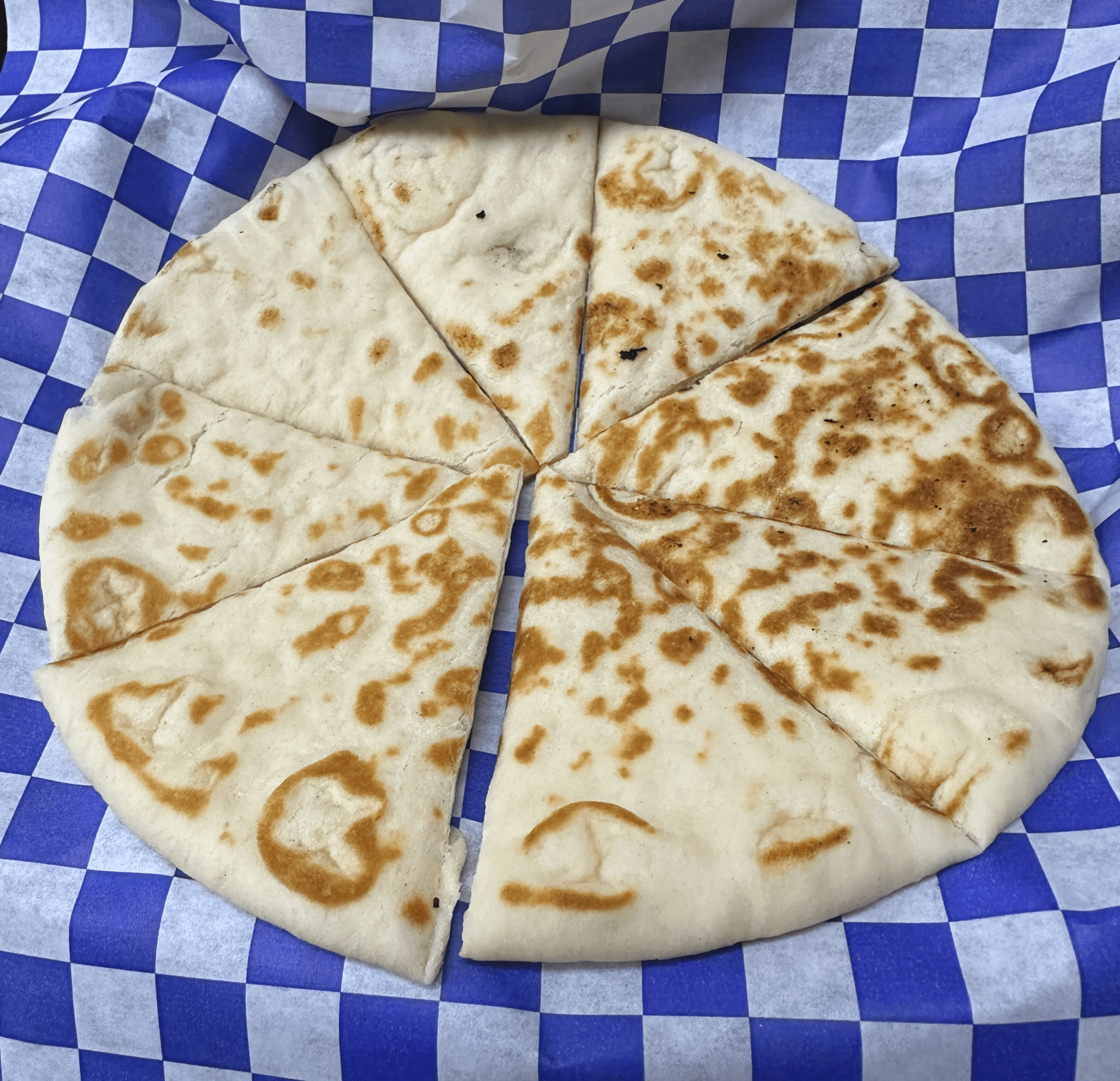 2 October 2025: The bread, what most would term as “pita,” is wonderful. In Arabic culture, bread is a deeply symbolic food. It represents life, a divine gift, hospitality, and community. Bread is often eaten with every meal. It’s served with the appetizer combo in a plate with several wedge-shaped slices forming a circle. The bread has a light pinto pony char. It makes an excellent dip for the baba ghanoush and hummus though you could eat a plateful by itself and be entirely satisfied. Bread is one of those foods that has been made by many cultures across the millennia. Along with tortillas and naan, I might be able to subsist on bread alone despite Matthew’s exhortation that “man cannot live on bread alone.”