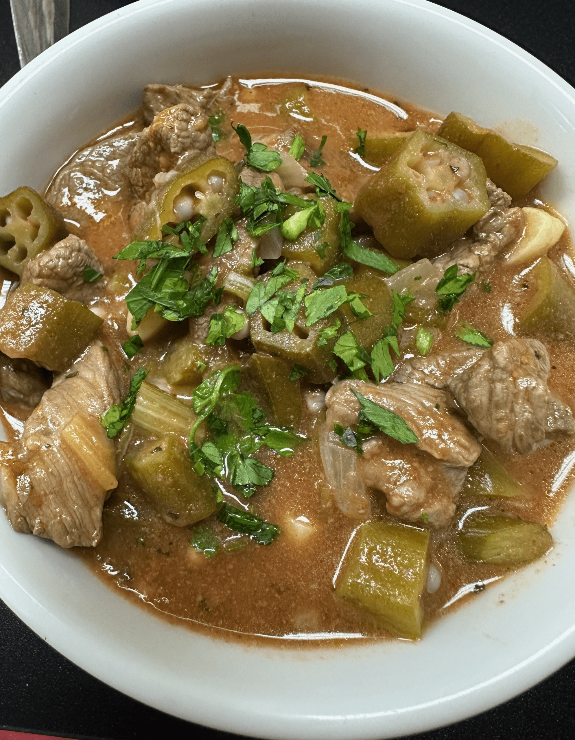 2 October 2025: The dish Lynn and her culinary cohorts enjoyed most may have been the lamb and okra soup. It’s one of three soups on the daily menu in addition to a chef’s special soup (mushroom on the day of our inaugural visit). Rightfully so, Sufyan raved about the soup, particularly the chef’s preparation of the lamb. Indeed, generous bite-sized chunks of tender lamb were absolutely mouth-watering. Sufyan explained that the secret to preparing lamb as well is selecting a lamb that’s not too old or too old. It’s a special balance the chef understands. He also shared that many people find the “sliminess” (mucilaginous) of okra off-putting, but was confident that wouldn’t be the case with us. The baby okra was fresh with a slight herbaceousness. This is one soup everyone should try.