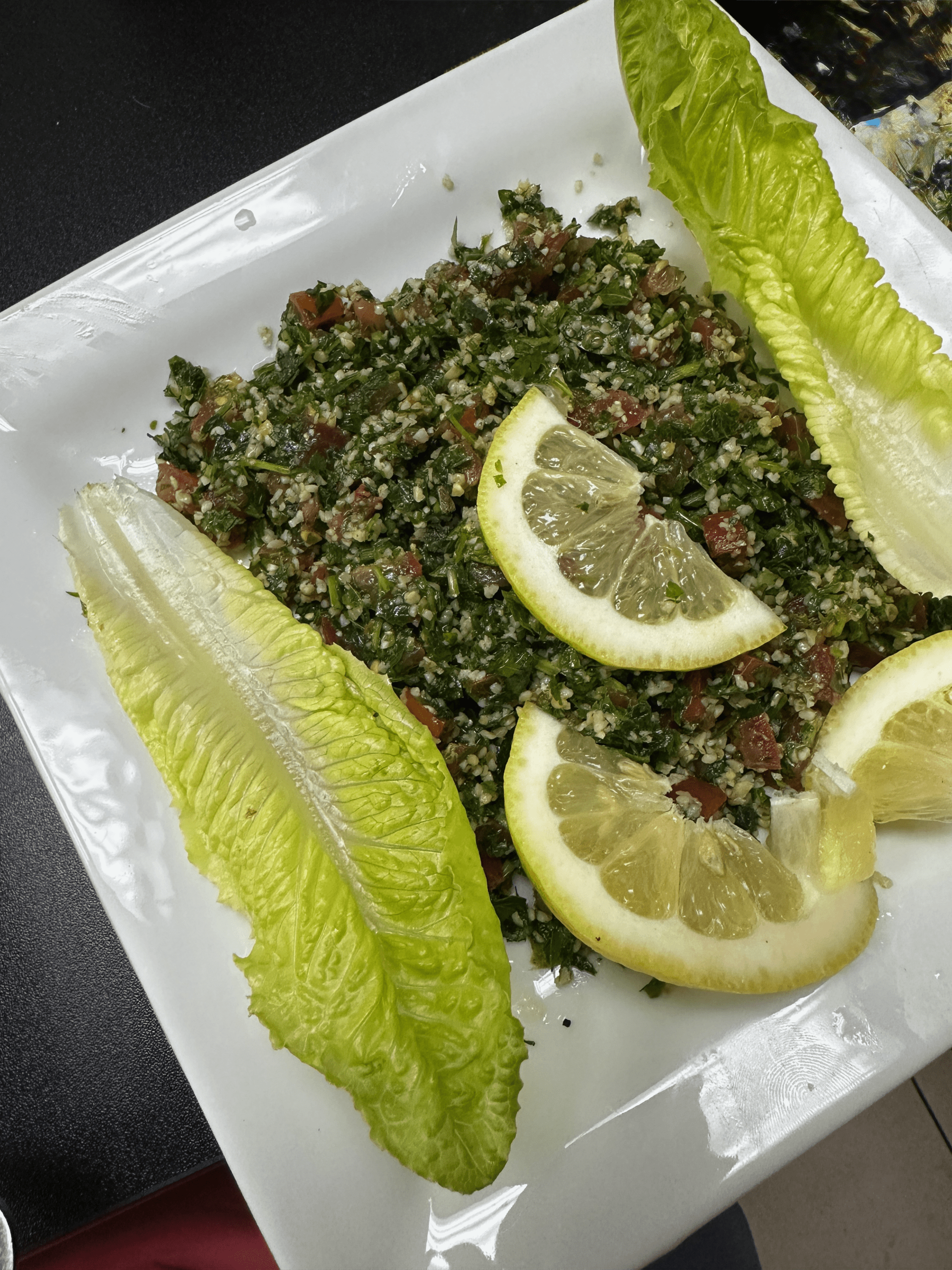 Service is unfailingly polite at Nora’s. Sufyan loves to discuss Middle Eastern cuisine and is well-connected in the community. Among family friends are the Abdeljalil family which owns the aforementioned Al-Qud’s. Sufyan invited comparison between Nora’s and Al-Qud’s, boasting that many of Nora’s dishes are the best he’s ever had–and he’s a well-traveled guy. Sufyan is a classically trained chef, having completed a rigorous five-year degree program in Jordan. He can cook anything, but his heart is with Middle Eastern cuisine. During the delightful hour-and-a-half we spent at Nora’s, Sufyan insisted we try the Arabic tea and tabouli, neither for which we were charged. Both were superb! I can’t guarantee you’ll get free food when you visit, but you will be well taken care of.