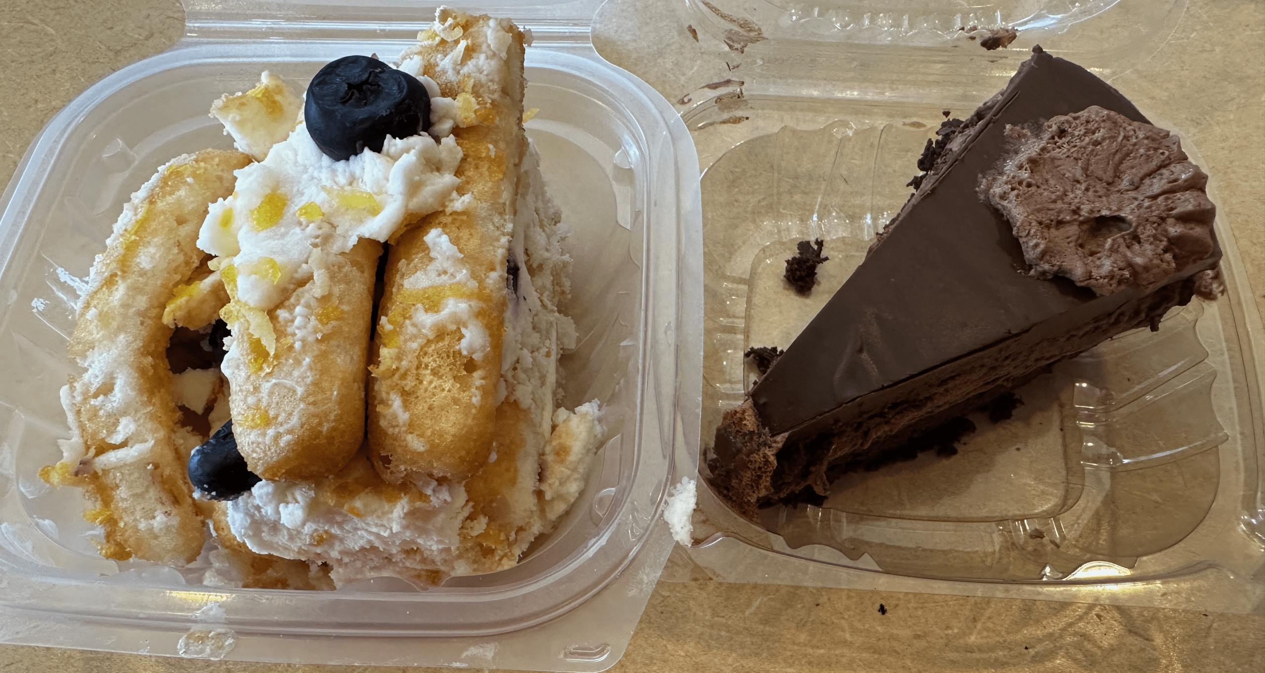 My Kim’s dessert choice was a chocolate mousse cake. This masterpiece is moist with a light and creamy mousse filling and a smooth chocolate ganache on top. It’s a rich and decadent dessert defined by its moist chocolate cake; airy, whipped chocolate mousse and a generous ganache topping. The contrasting textures of dense cake and light, silky mousse create a luxurious eating experience. This is among the best chocolate mousse cakes we’ve enjoyed in New Mexico.