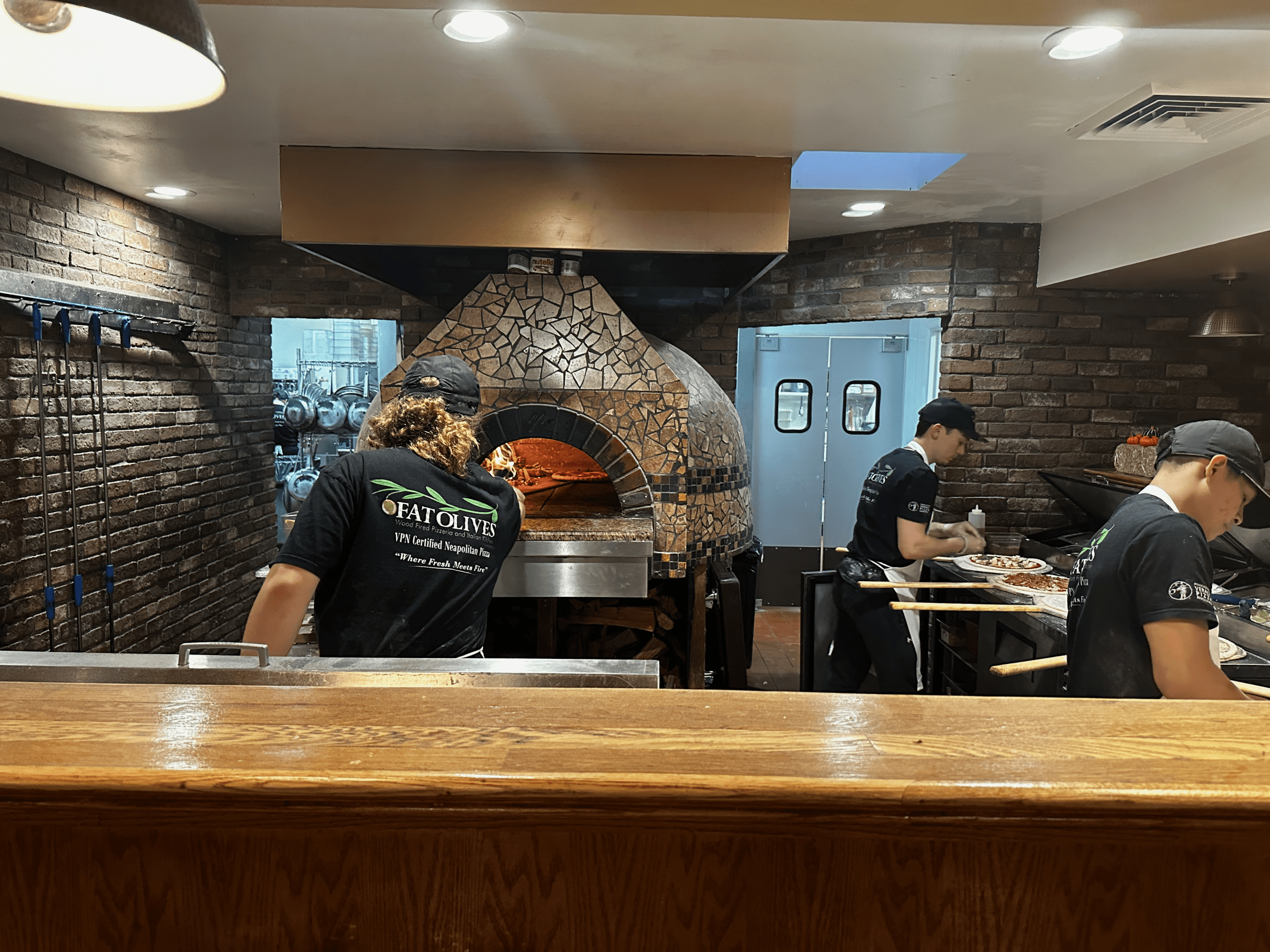 Fat Olive’s oven (pictured below) was handcrafted in Italy by the Valoriani family, 5th generation oven builders. The restaurant uses only imported organic, non-GMO, San Marzano D.O.P tomatoes for its pizza sauce. Its “00” imported flour is also organic and GMO-free. Using the finest cheese curd and Sicilian sea salt, Fat Olives hand-makes over 500 pounds of Fior de latte (mozzarella) every week. Ingredients of the highest quality, attention to detail and strict adherence to standards established by exports, is it any wonder I wiped out an entire pizza. More on this prolific pie below…