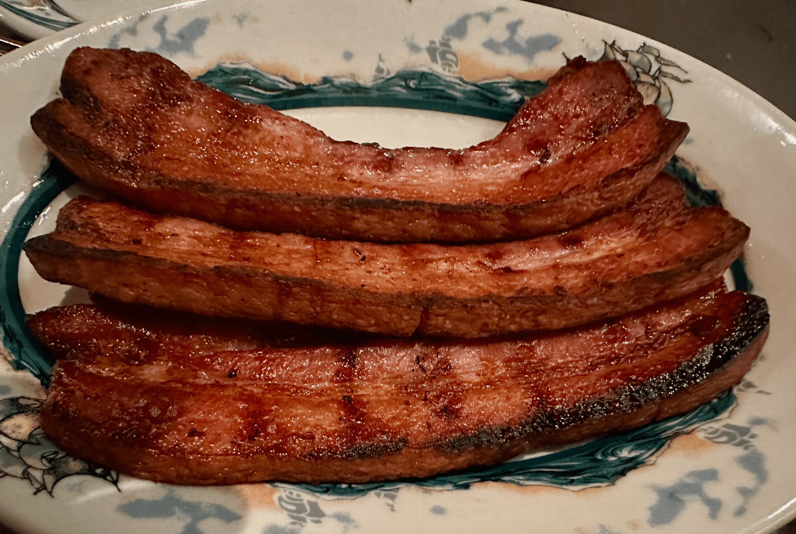 Many steak savants will tell you that aside from steak, the one menu item not to be missed is Peter Luger’s sizzling, extra-thick cut bacon. It’s often compared to a thick slice of ham, maybe even a pork chop with all the crispy, smoky, and flavorful notes and a balance of meatiness and fat. It’s the best bacon we’ve ever had–even better than English bacon. The distinct, delicious smoky flavor is akin to that of a rich chunk of pork butt. As with every item (maybe even dessert) on the menu, the bacon is even better with Peter Luger’s steak sauce. The sauce adds even more flavor to a bacon as close to perfect as any bacon that’s ever existed. It’s simply outstanding!