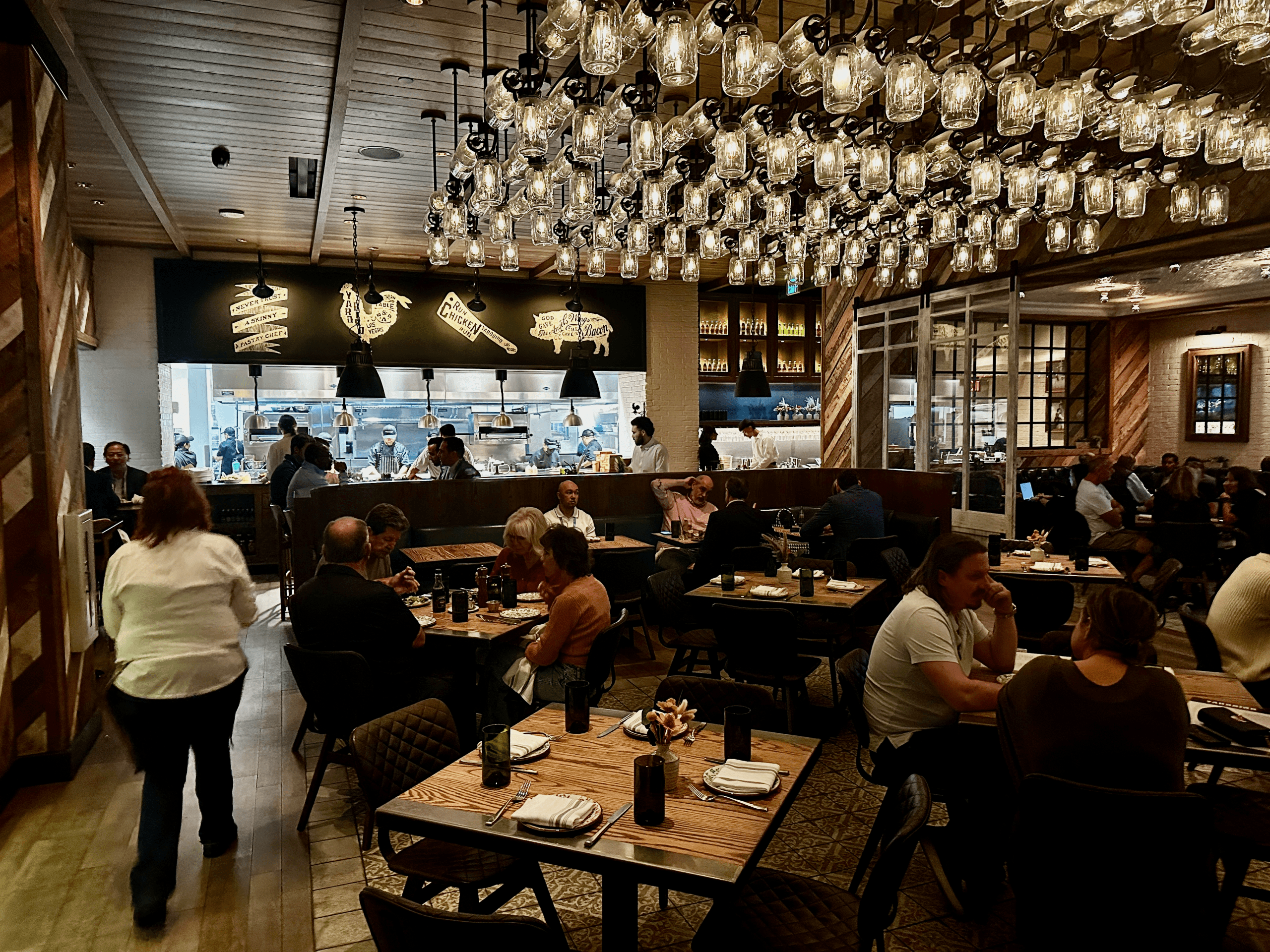 At 39, neither my Kim or I are youthful and cool enough for the Miami vibe, so chances are slim we’d ever visit “Vice City” for that exalted fried chicken. Happily, Yardbird now has locations in Chicago, Dallas, Denver, LA, Las Vegas, and Washington, D.C. Its Las Vegas home is within the Venetian casino where it’s located within restaurant row. Yardbird isn’t your stereotypical Southern fried chicken restaurant. It’s neither bright nor colorful and you won’t see clucks of chicken artifacts strewn about. Instead, this Yardbird is rather dark, its setting more conducive to the “Bar” portion of the restaurant’s name. In other words, it’s the perfect setting for a Las Vegas restaurant frequented by casino and bar-goers.