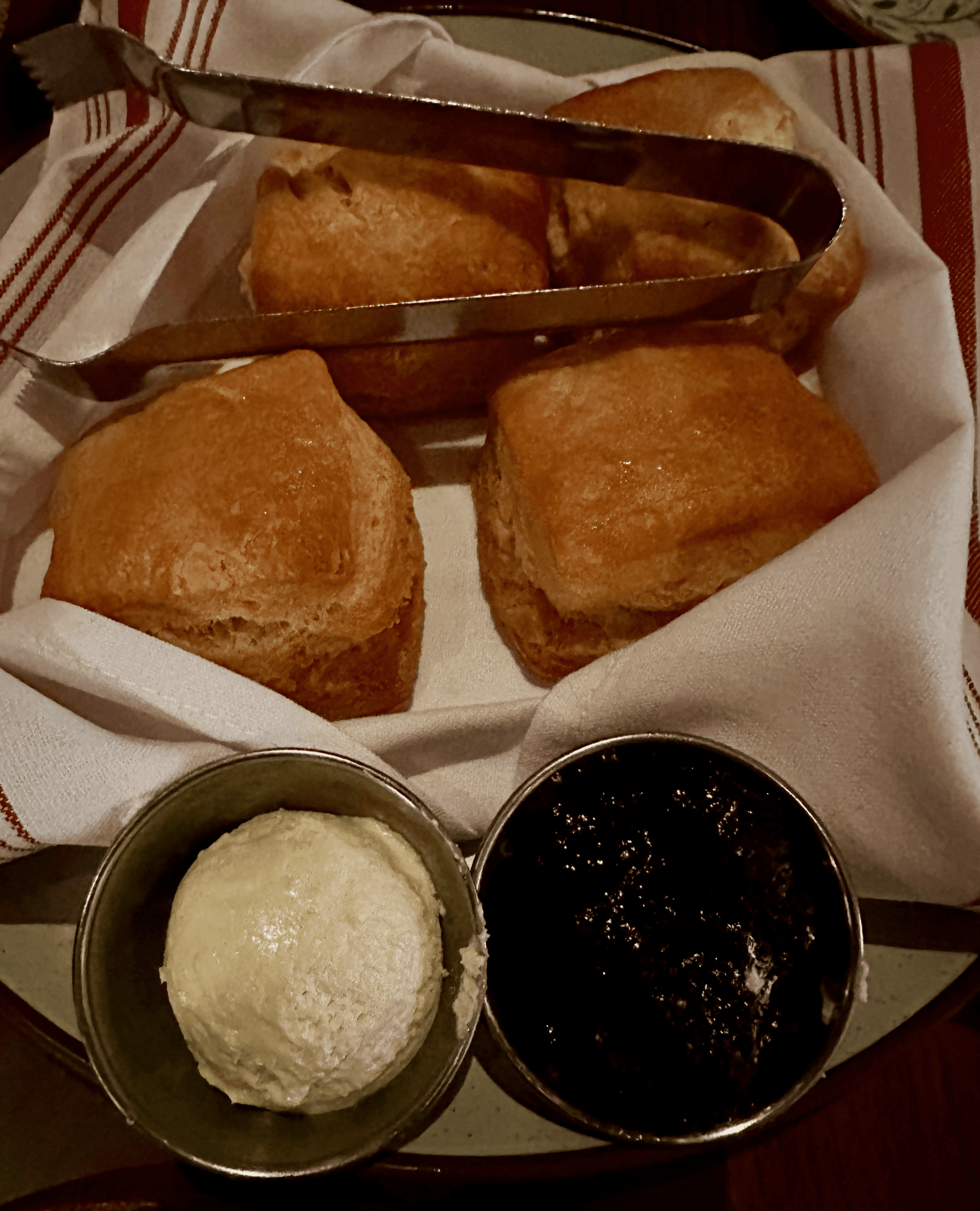 But first–something from the “starters and sides” section of the menu. Few sides are as closely associated with Southern fried chicken as are classic buttermilk biscuits. Yardbird serves its biscuits with honey butter and a housemade jam. The housemade jam, a caramelized green apple jam was the highlight. Reminiscent of an apple butter, it has a tangy flavor that tastes like autumn. The biscuits themselves aren’t nearly as fluffy and light as true Southern biscuits made with White Lily soft wheat flour. Thank goodness that caramelized green apple jam stole the show.