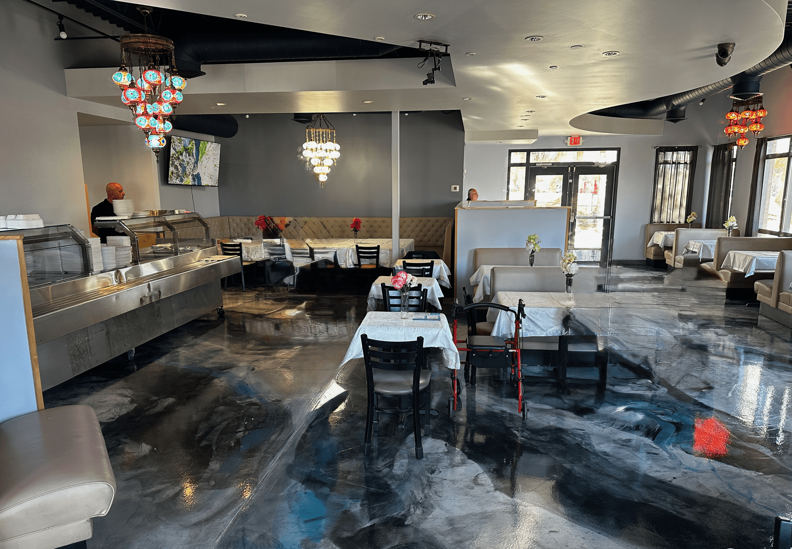 Anatolia’s menu has not been completely finalized as of this writing (December 8, 2025). At this point, it lists six appetizers including baba ghanoush, my favorite starter at many Mediterranean eateries. Eight sandwiches, all constructed on freshly baked bread, also adorn the menu. Those include both kebabs and gyros. Lunch specials, which change daily, are available Monday through Friday from 10AM through 2PM. Entrees include all the specialties which made Anatolia a dining destination. Those include lamb chops, kofte kebab, lamb shish kebab, falafel plate and an iskender plate. If you’ve never had iskender (sliced meat topped with hot tomato sauce over pieces of pita bread, and generously slathered with melted special sheep’s milk butter and yogurt) you’re in for a treat. An array of delightful Turkish desserts are also available as are Turkish coffee and Turkish hot tea.