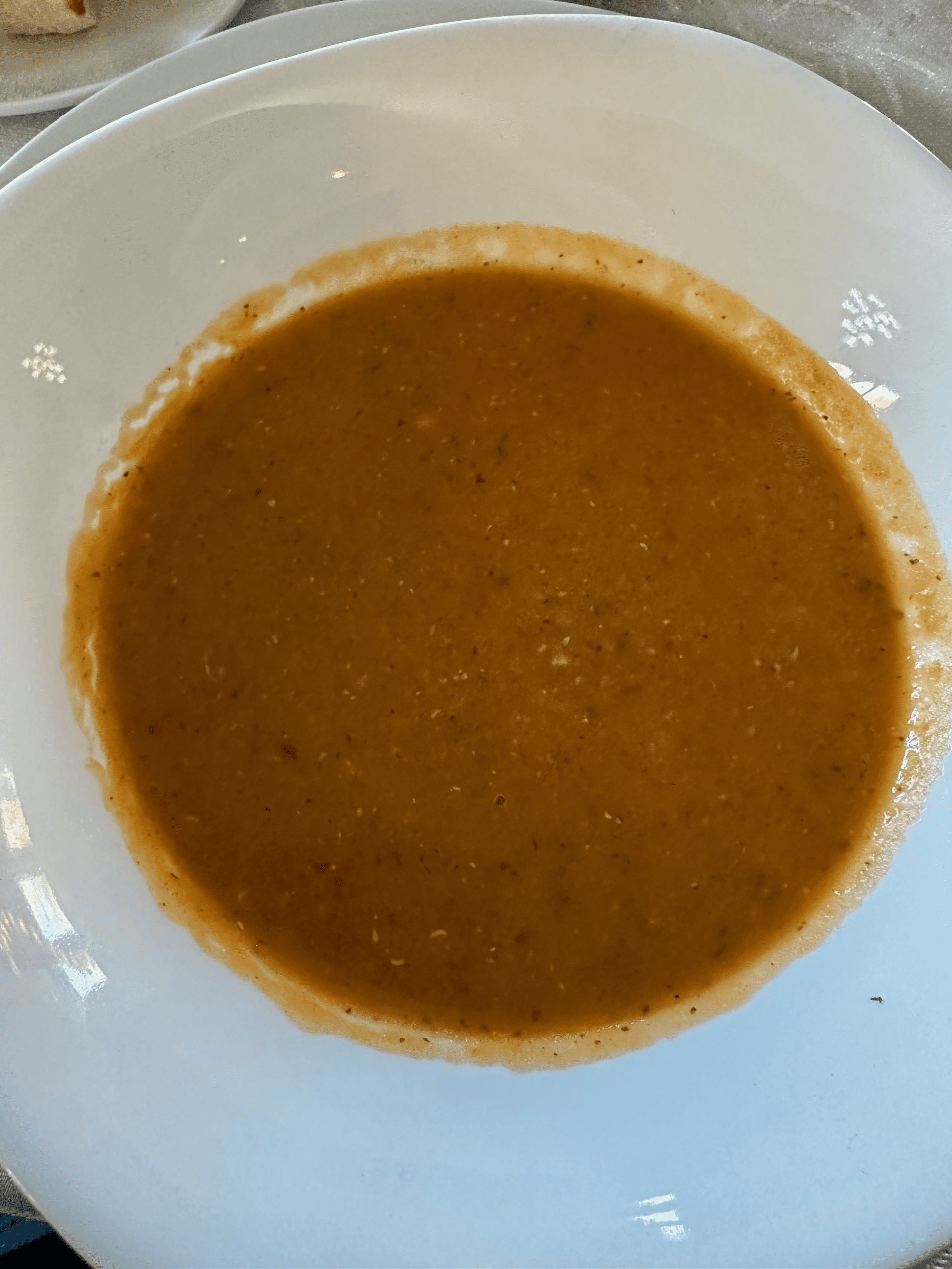 8 December 2025: Our meal started with a soul-warming, comforting and nutritious red lentil soup served with bread. Though our preference would have been to experience the bread with butter, Umut wanted us to savor the bread sans distraction. Good call. The bread was quite good. The lentil soup was velvety and creamy though no cream was used in creating it. This tomato-based soup is richly seasoned and delicious. On a cold wintery day, it’s an elixir sure to satisfy your need for warmth and comfort.