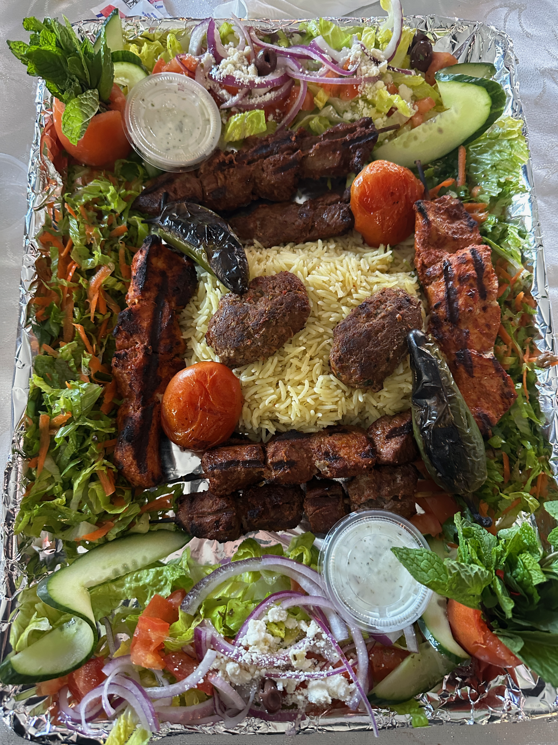 Mehmet is a peripatetic presence at Anatolia along with his younger brother Umut, the restaurant’s owner. You might see either or both sporting a shirt with a Turkish symbol resembling a bullseye. Umut isn’t joking when he tells you it’s an “evil eye” symbol, a talisman to ward off the evil eye curse and bring protection as well as good fortune. Both Umut and Mehmet periodically flit back-and-forth to the Sawmill Market where the Meso Grill is located. As with most Sawmill Market restaurants, the Meso Grill operates out of a small pod (about the size of a concession stand) and doesn’t have dedicated seating (though there is copious seating nearby). It also has an abreviated menu offering much fewer options than Anatolia. Thankfully, that smaller menu includes baklava and other Turkish delights as well as rotisserie spits showcasing lamb and chicken. Meso Grill opened in 2022.