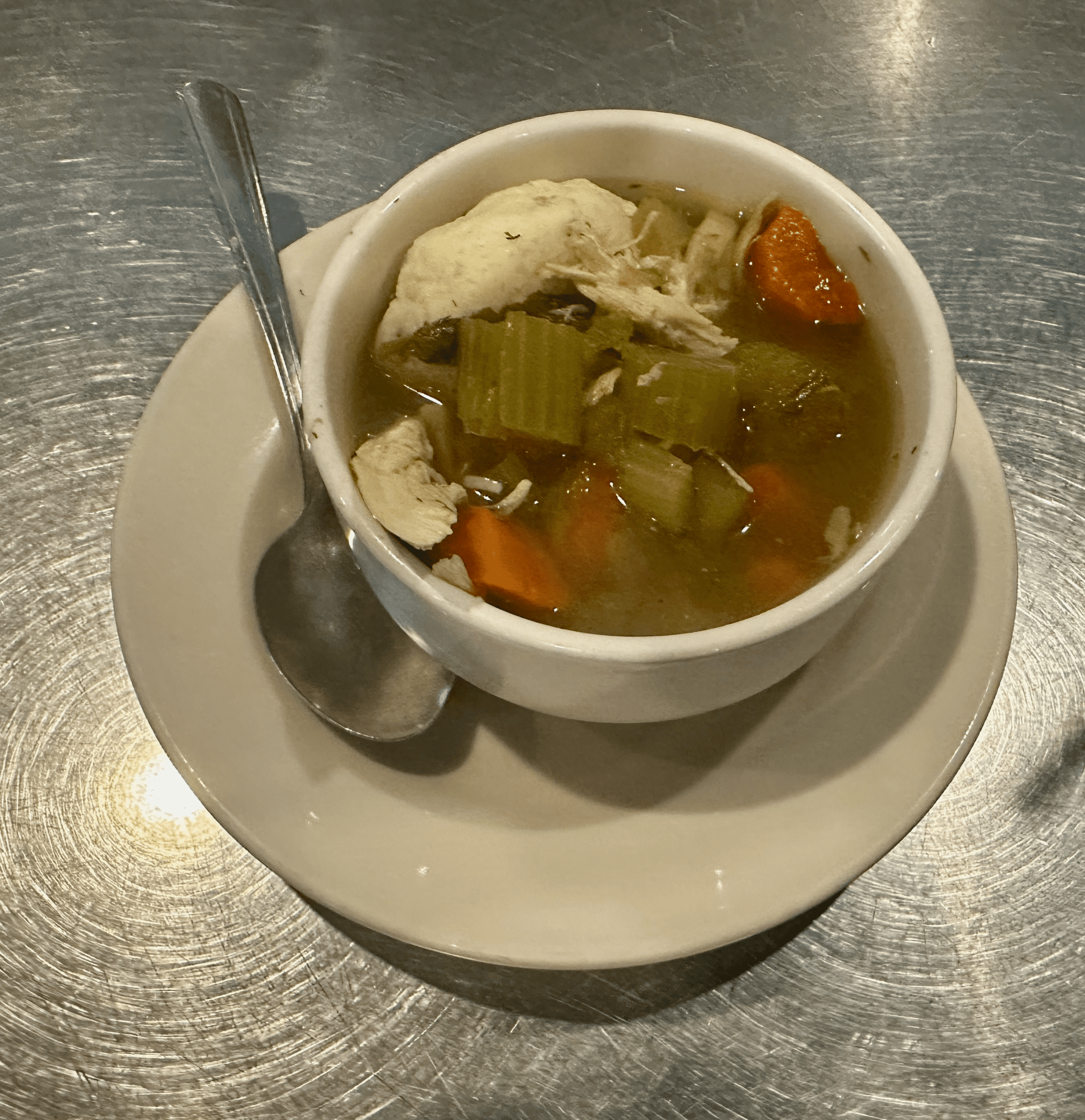For her soup choice, my Kim asked for the matzo ball soup. It’s served in an oversize cup and is brimming with sliced carrots, celery, chicken and matzo balls. The broth is magic, an elixir that will sooth the soul. It’s among the best matzo ball broth we’ve ever had. Vegetables are perfectly al dente, not too hard and certainly not mushy. The matzo balls are toasty dumplings of deliciousness. Is it any wonder Jewish mothers consider matzo ball soup Jewish penicillin: the ultimate, soul-healing comfort food. It’s steeped in family tradition and a story of survival.
