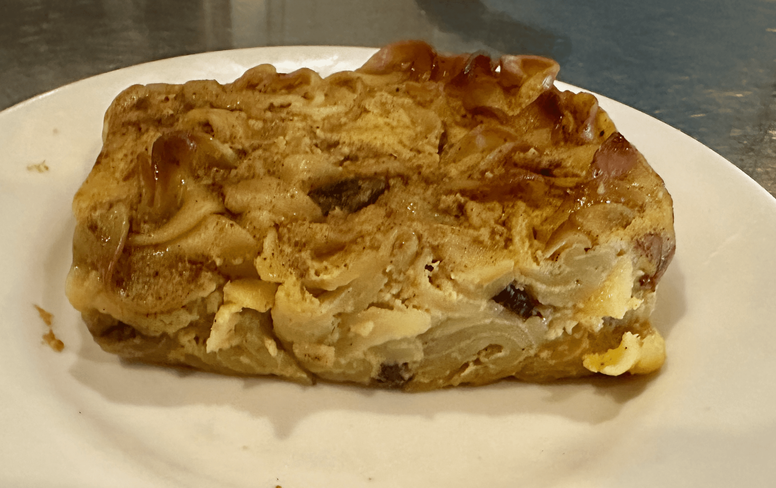 We were too full to enjoy any of the pastries. Even a black-and-white cookie would have proven too much. Fortunately, however, I ordered Scott’s kugel noodle pudding. This traditional Jewish baked casserole is essentially a sweet bread pudding-like dessert made with egg noodles, creamy egg custard and raisins. It’s creamy inside with crispy golden edges. At Scott’s it’s served warm. Never have I had a better kugel. As a bread pudding aficionado, I appreciated just how light and delicious this kugel was.