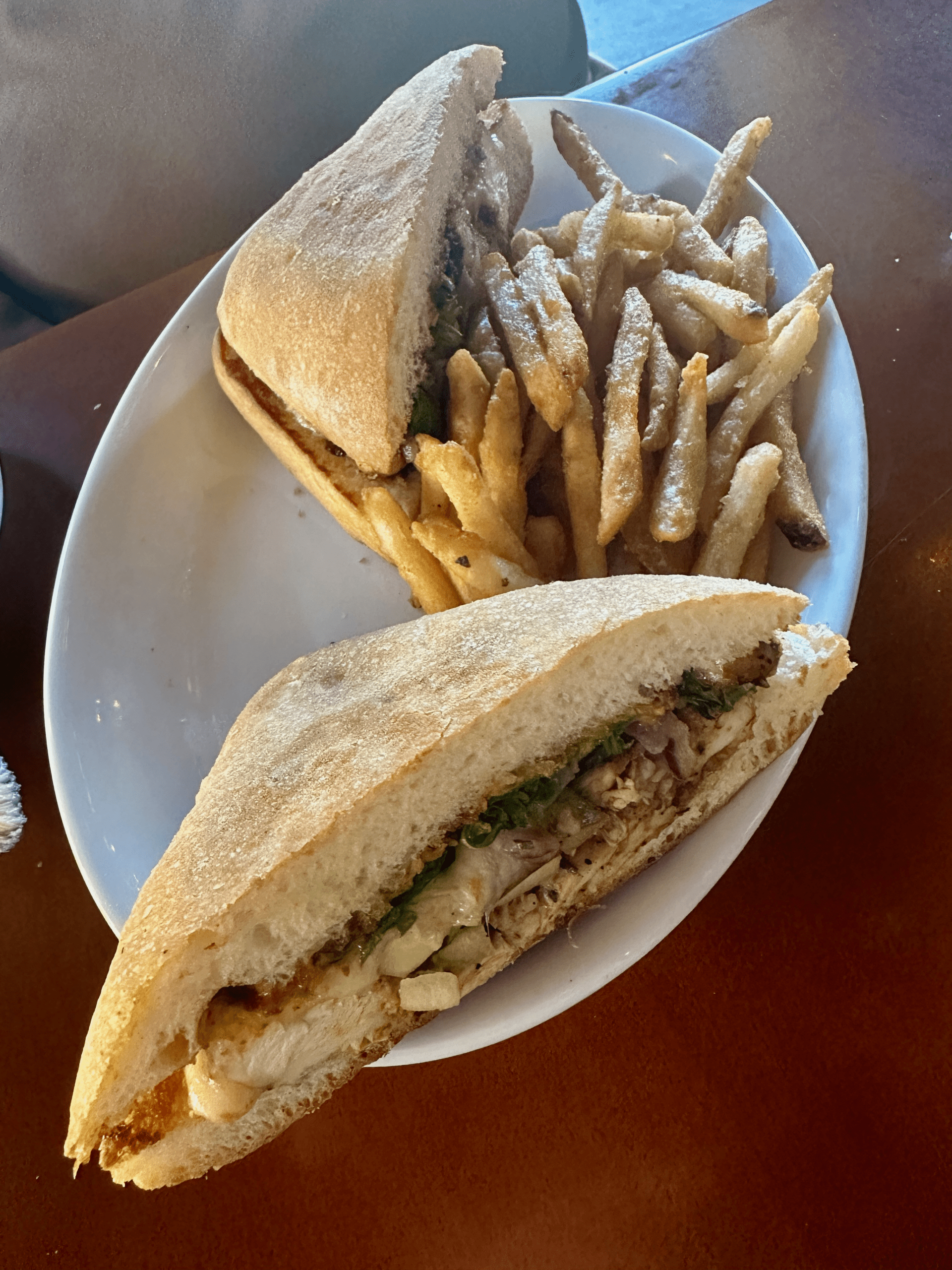 My Kim’s dish came from the sandwich menu. It’s called French Panty (chicken, brie, pears, red onions, arugula, grain mustard, balsamic glaze and four cheese blend… served on a toasted ciabatta) and it’s one of the very best sandwiches we’ve had in Arizona. Particularly spectacular was the interplay of savory (red onions, grain mustard, four cheese blend) and sweet (pears, balsamic glaze) ingredients. The grain mustard will awaken dormant taste buds with its pungent punch. The pears are fresh and crispy with a light, sweet flavor that somehow manages to make itself known. The four cheeses lend salty creaminess while the ciabatta was the perfect canvas for a sandwich that delighted us both.