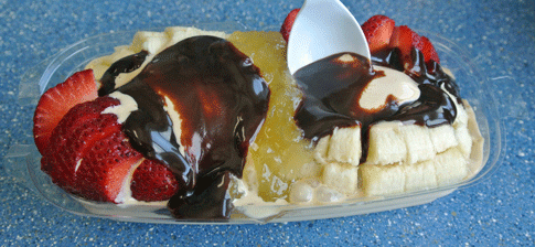 Chillz has an excellent rendition of a banana split. It’s pretty much a standard banana split only it’s made with custard instead of ice cream. If the flavor of the day happens to be fudge caramel eclair, it makes an outstanding foundation for the strawberry, chocolate fudge and pineapple toppings. Chocolate custard, on the other hand, is a terrific foil for the S’mores: marshmallow, hot fudge, graham cracker, whipped cream and a cherry. It’s wonderful!