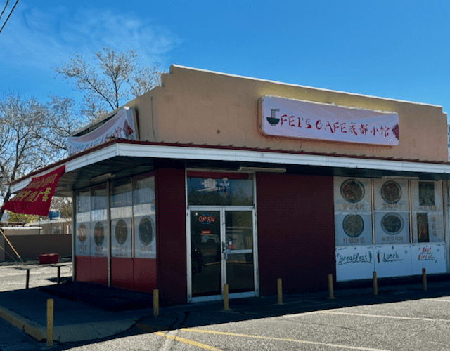 Fei’s Cafe is located on the southeast corner of the intersection between Wyoming and Zuni. It’s not quite a mile to the Wyoming gate to Kirtland Air Force Base. Fei’s occupies an aged edifice whose halcyon days are probably forty years removed. Previous occupants include a nunber of Thai, Vietnamese and Mexican restaurants, most of them not memorable. The area in which Fei’s Cafe is situated is in the heart of the area relabeled the “International District” after being long known as the “War Zone.” This Fei’s Cafe is not to be mistaken for the Fei’s Cafe in the University area. That restaurant shuttered its doors several years ago.