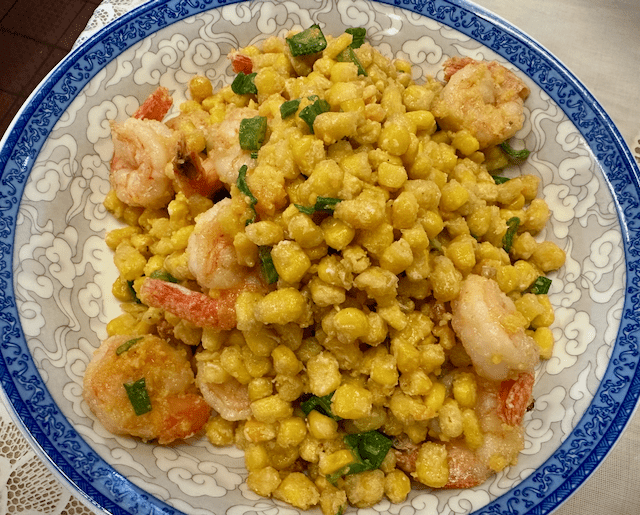 Among the unique menu items was egg and corn stir fry with shrimp. I don’t recall having seen this item on the menu of any other Chinese restaurant in New Mexico, but apparently it’s not uncommon in China. Characteristically Sichuan-style egg and corn stir fry includes Sichuan peppercorns as well as garlic and (or) ginger for the numbing kick Bill and I love. This dish combines fluffy eggs which adhere to the corn niblets. Fei’s version includes both stir-fried shrimp and fried shrimp pieces. Surprisingly, this may have been our favorite of the four dishes we shared.