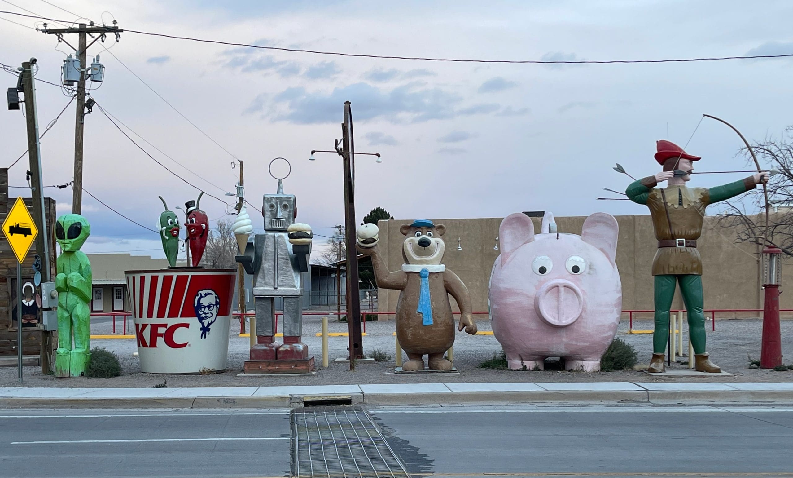 To get to Sparky’s, you’ll take Exit 41 off Interstate 25, one of the most interesting and colorful stretches of highway in the state. After crossing the murky and meandering Rio Grande, you’ll start to wonder if you’re in the Land of the Giants, the iconic fiberglass and concrete statues that were so prevalent along America’s highways and byways in the 1950s and 1960s. This roadside art is part of the fabric of Americana, albeit a kitschy tradition that is fading with the passage of time (which aptly describes many of the statues themselves).