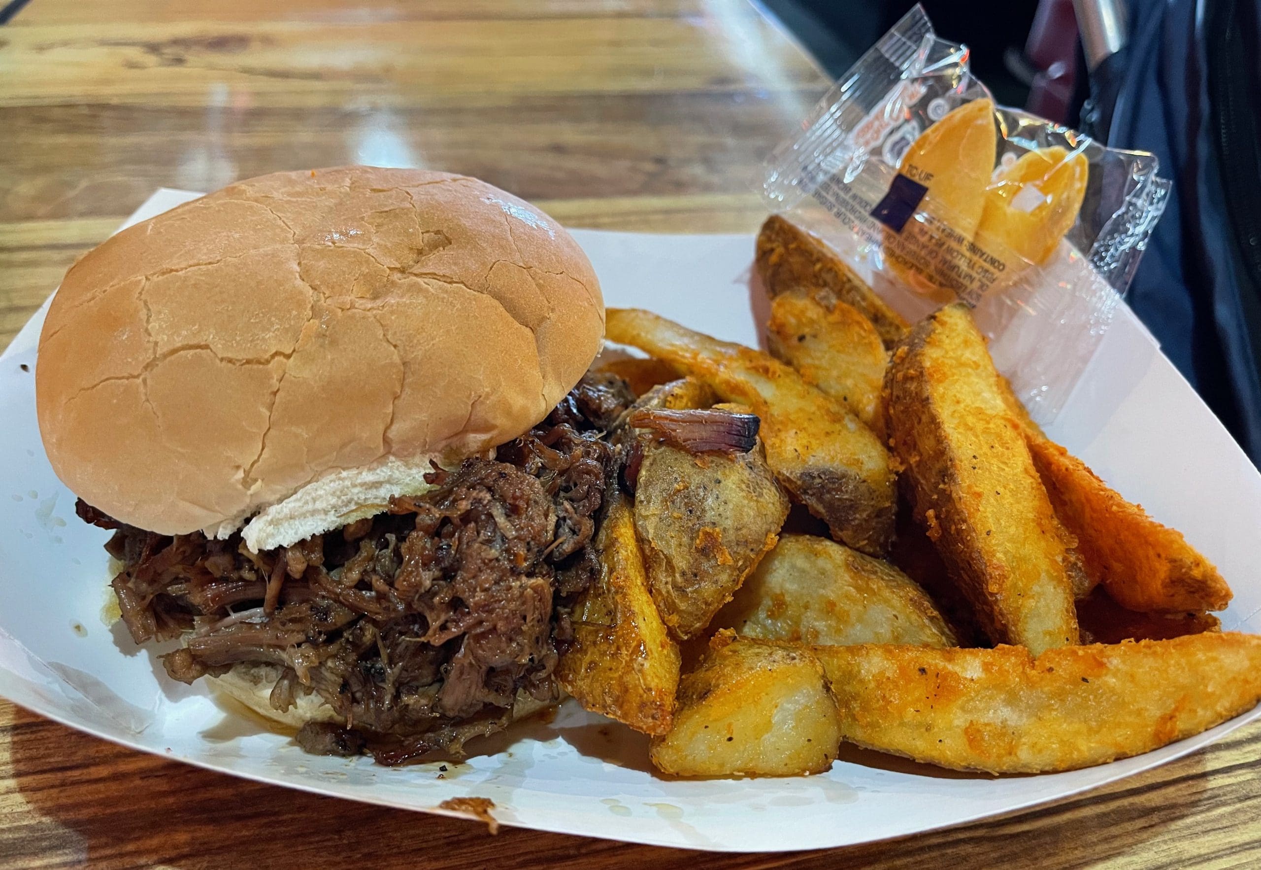 17 September 2022: In yet another example of our Mars versus Venus relationship, my Kim has always and forever been an aficionado of pulled pork in every form while her stubborn husband champions the superiority of brisket. For the first time in her 37 years of sharing meals with her, she found a brisket sandwich superior to the brisket sandwich she enjoyed the previous day. Sparky’s brisket sandwich is Texas slow-cooked brisket worthy, an absolutely fantastic all meat sandwich. She added a bit of Sparky’s fiery sauce, but admitted it was wholly unnecessary–a hallmark of Texas caliber barbecue.