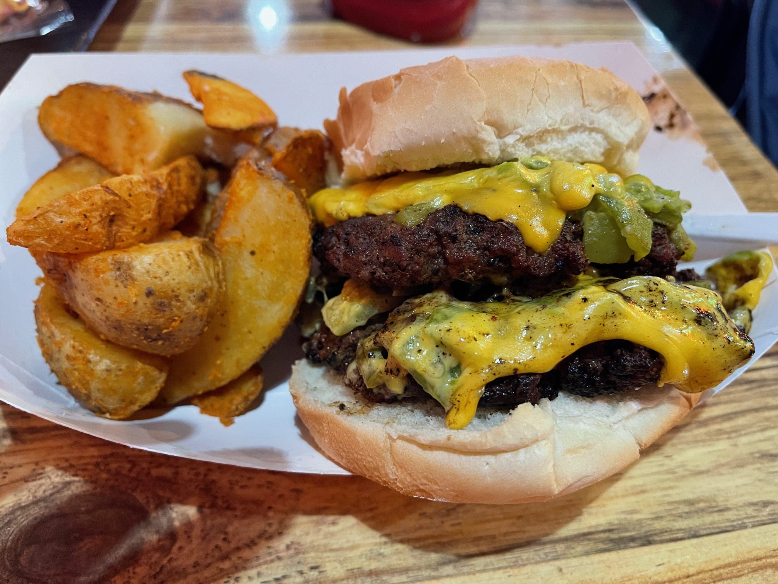 The barista’s other half is the barbecue man, Teako Nunn, a very experienced practitioner of the low-and-slow disciplines. A certified Kansas City Barbecue Society judge, Teako is usually seen tending to the large smoker behind the restaurant. He patterns his barbecue after the barbecue in and around the hills of Austin, Texas where some of the nation’s best barbecue can be found. Teako and his family are no slouches when it comes to green chile cheeseburgers. In 2017 and again in 2022, Sparky’s won the New Mexico State Fair’s Green Chile Cheeseburger Challenge, a blind judging competition pitting purveyors of the state’s sacrosanct burger. When I congratulated Teako on his second win, he humbly related that he got a bigger kick out of competing with his family than he did in winning the event.