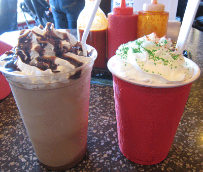 If you want to do as the locals do, order a green chile shake. It’s essentially a vanilla shake with chopped green chile interspersed throughout. The cold ice cream renders the green chile nearly frozen, changing the texture of the chile into a chewy, near Popsicle-like deliciousness. Shakes, made with ice cream and milk, tend to be a good way to quell the piquancy of chile. Ironically, the green chile on this shake is piquant enough to give you hiccups if you’re not a fire-eating New Mexican. If for no other reason than to say “been there, done that,” everyone should try a green chile shake at least once. Me, I liked it a lot and will have it each and every visit.