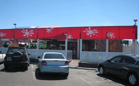 Similar to its neighbor, BK Carne Asada & Hot Dogs is tailored for alfresco dining, a semi open-air restaurant in which the dining room is a concrete slab covered by a canopy which provides shade to protect diners from the onslaught of Tucson’s scalding heat and monsoon showers. An anthropomorphic smiling hot dog, the restaurant’s mascot “greets” you as you walk in. The menu is strategically positioned directly above the order counter. It’s a menu dominated by Mexican fast foods: tacos, caramelos (similar to quesadillas), tortas, burros and of course, the Sonoran hot dog.