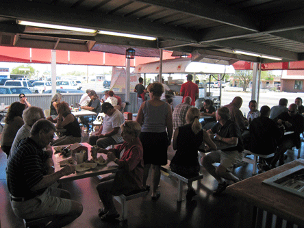 A number of rabid fans from both camps cheered on their favorite and appeared to have a great time watching the process. The episode showcased the difference between the two Sonoran hot dogs. El Guero Canelo prides itself on staying true to tradition while BK’s has taken liberties with the condiments. The recipe for BK’s award winning Sonoran hot dog, by the way, can be found on my friend Becky Mercuri’s fabulous Great American Hot Dog Book. Frankly I’m not sure that many people will be able to discern the difference between the Sonoran hot dogs at BK’s and El Guero Canelo.