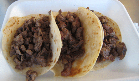 Because carne asada precedes hot dogs on BK’s marquee, we had to try a trio of tacos engorged with carne asada. The carne is sliced into smaller than bite-sized pieces and is nestled in warm corn tortillas. Nary a hint of sinew or excess fat could be found on the carne asada, a very good sign. These terrific tacos would be reason enough to visit BK’s.